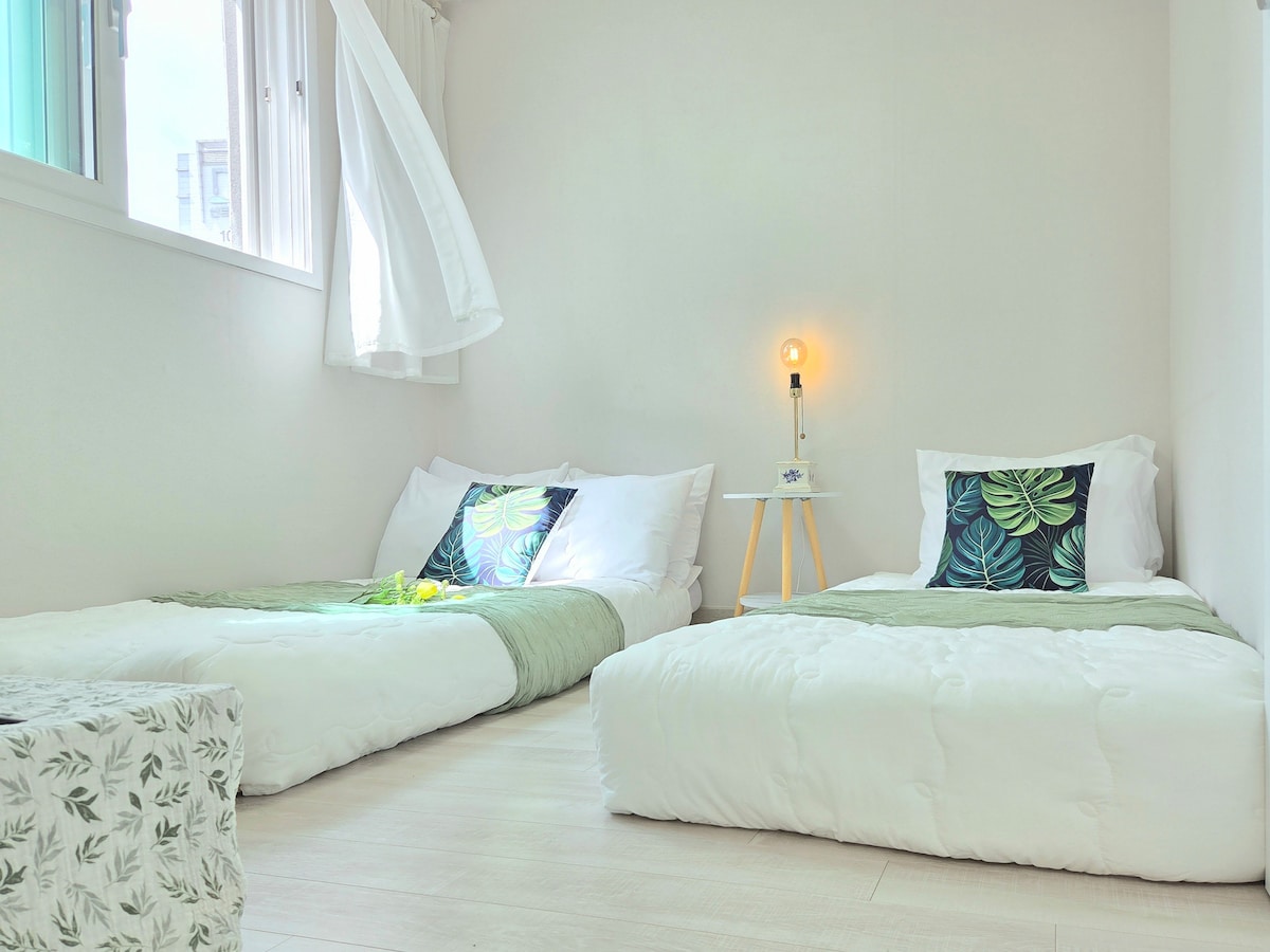 "STAY.NORMALINGS"违背了日常的正常。 我想通过日常生活中随处可见的平凡的这个地方,提供舒适的陌生感。 白天,感受凉爽的风和温暖的阳光从大窗户进来。 晚上,听你喜欢的音乐放松一下。 Check in: 3 pm Check out: 11 am - 推荐2人预订。 (双人床房设置,2张床不可用) 3人:小房间沙发床上的床上用品套装