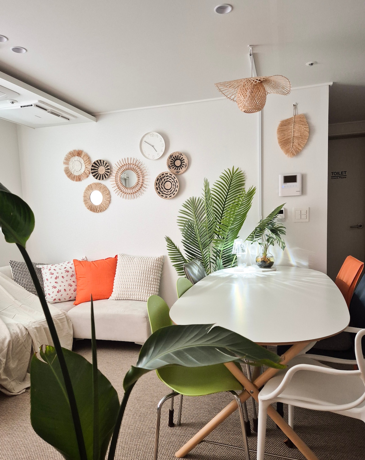 🪨 jagal stay – sungnae Welcome to Jagal Stay – Sungnae 서울 강동구 올림픽공원 인근, 천호역 도보 2분의 초역세권에 위치한 신축 빌라 첫 입주의 2베드룸 감성 스테이입니다. 따뜻한 우드톤과 라탄, 식물로 꾸며진 공간은 마치 여행을 온 듯한 분위기를 선사하며, 도심 속에서도 편안한 휴식과 힐링을 느낄 수 있도록 준비했습니다. 햇살이 부드럽게 스며드는 공간과 은은한 조명 아래에서 하루를 천천히 정리할 수 있는 곳입니다. ✔ 퀸 침대 2개 , 쇼파베드 1개, 1인용바닥요매트세트/ 최대 6인 가능 ✔ 천호역 도보 2분 초역세권 ✔ 올림픽공원 / 잠실 접근 편리 ✔ 조용하고 안정적인 주거 환경 ✔ 장기숙박 환영-할인문의 가족, 친구와 함께하는 여행은 물론 혼자만의 여유로운 시간까지. 빠르게 흐르는 서울 속에서 잠시 머물며 숨을 고를 수 있는 공간, 자갈스테이 sungnae 입니다.