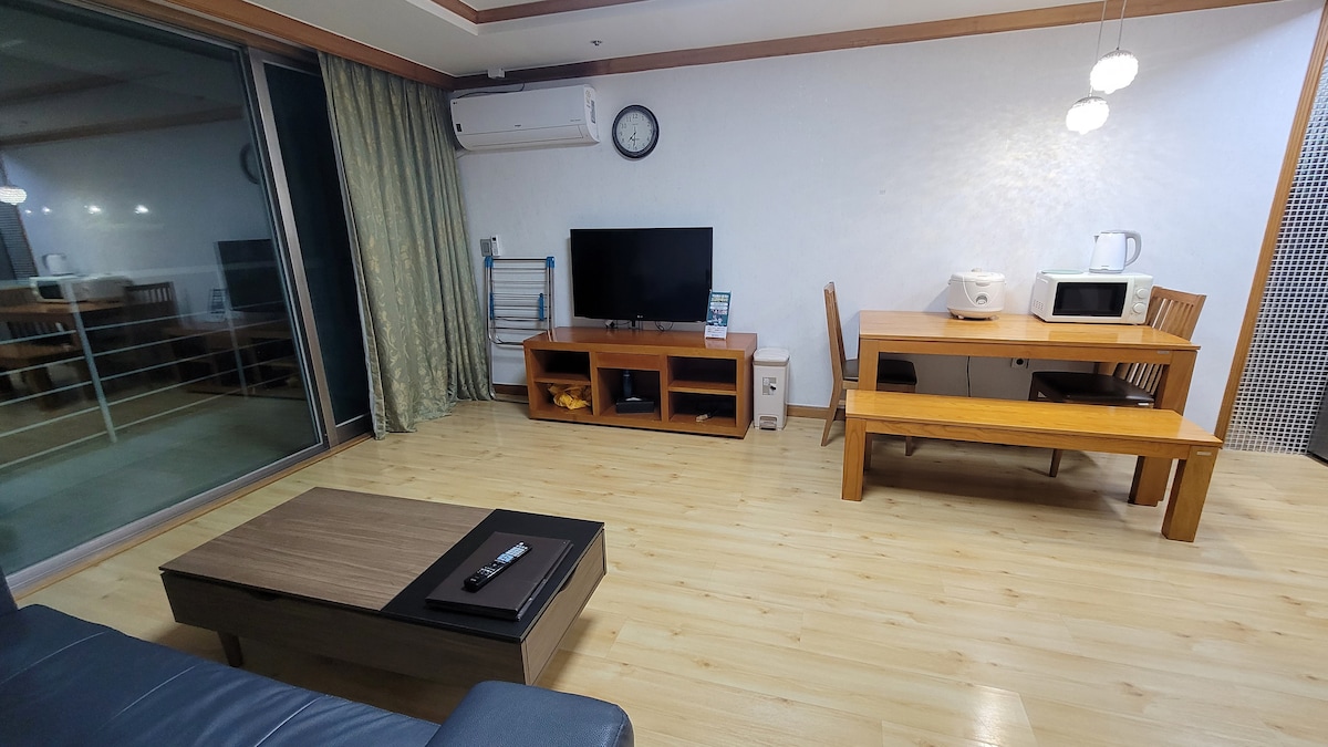 ★ Longstay discount automatically applied ★ • 17th Floor/1.5 room with a south-facing balcony and east-facing window. • Best view lines in Sokcho. enjoy Sunrise over the East Sea, Cheongcho Lake, Seorak Mountain, and city night view directly from the room. • 20 min walk to Sokcho Intercity Bus Terminal / 5 min walk to Sokcho Fish Market. • All touch points & floor are disinfected with alcohol after cleaning. • LG U+ OTT available (your own personal account) • Cooking is NOT allowed in this room.