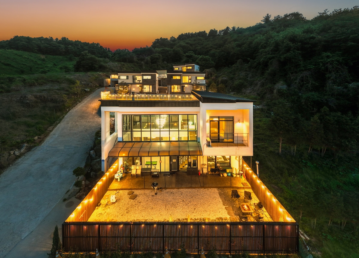 힐리야 _ 오롯이 한팀 완벽독채/벽난로/야외불멍/바베큐/노래방/파티오