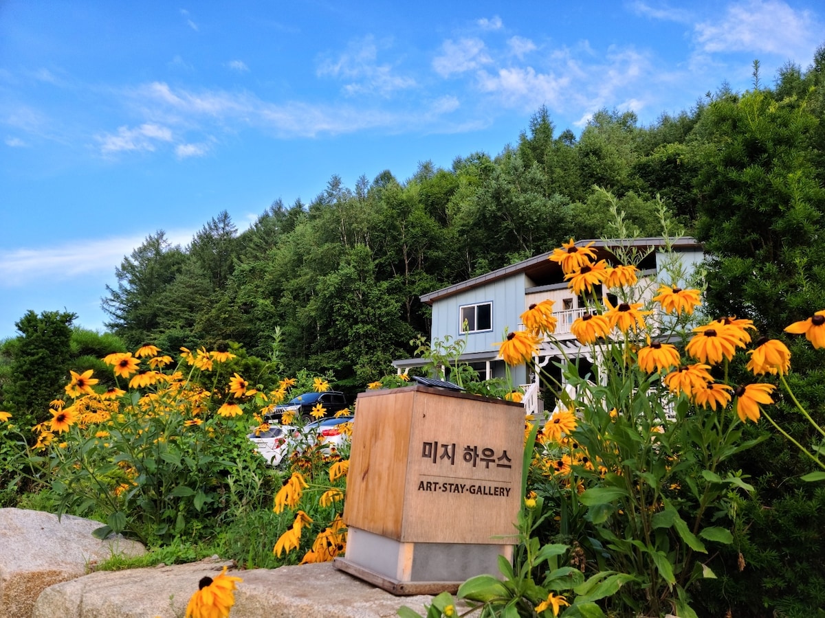 창작과 휴식이 공존하는 공간 사유하며 휴식하는 우리의 공간에 오신 것을 환영합니다. 이곳은 손으로 책을 만들고 커피를 내리는 기획자와 그림을 그리고 책을 쓰는 작가가 살고있습니다. 조용하고 아늑한 마을에서 진정한 의미의 '집'과 같은 편안함을 선사하고 싶습니다. 단순히 숙소를 제공하는 것이 아닌 따뜻한 이웃이 되고자 하는 마음으로 이 공간을 열었습니다. 이곳에서 일상의 분주함에서 벗어나 잠시 숨을 고르며 평화로운 시간을 보낼 수 있기를 바랍니다. * 머무시는 공간 옆에 작은 책방과 카페를 운영하고 있습니다. 책과 커피와 함께 오롯이 쉬어가기 좋은 공간입니다. 머무르는 손님께는 운영시간 이외의 시간에도 예약을 받아 열어드립니다. (@mijiseoga) * 원데이클래스 프로그램을 운영합니다. 드로잉클래스, 제본클래스 (문의 주세요.)