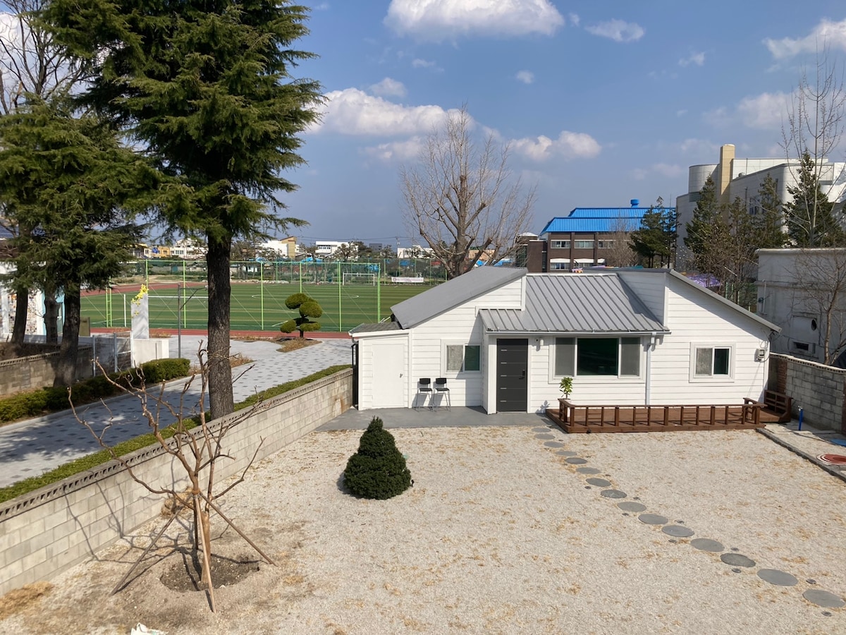 환영합니다. 화수목 스테이는 춘천시 서면 북한강 지류 마을에 위치한 숙소입니다. 화수목(花水木)스테이는 꽃과 물과 나무가 둘러싼 자연과 함께 하는 숙소입니다. 호스트가 상주하는 전원주택의 독립된 별채를 이용하실 수 있습니다. 숙소를 둘러싼 자연림의 풍부한 피톤치드와 매우 조용한 전원 환경을 즐길수 있습니다. 온전히 프라이빗한 숙소에서 충분한 휴식을 취할 수 있으며, 쾌적한 바베큐 데크가 마련되어 있습니다. 그리고 장작 화로도 준비되어 있어 오붓한 불멍을 즐길 수 있으며, 계절이 허락할 때 신선하고 다양한 앞마당 채소도 제공될 수 있습니다. 네스프레소 기계가 비치되어 있고, 커피 캡슐과 아이스 큐브를 제공합니다. 호스트는 영어 소통이 가능하며, 호스트가 운영하고 있는 화수목 공방에서 플레이팅 원목 도마 만들기를 체험할 수 있습니다.