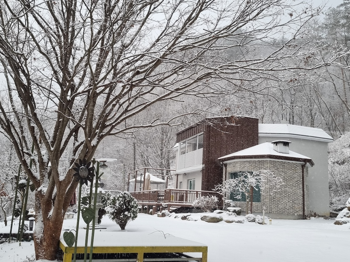 靠近首尔郊外的弘川拜伐迪公园/免费温水泳池/山景私人/一天团/周末