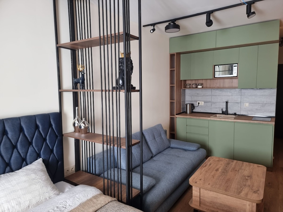 Welcome to the studio in Gudauri, Georgia, at an altitude of 2200 metres! Fresh renovation with wood and stone creates a cosy mountain atmosphere. Perfect lighting, functional areas - living room, bedroom, kitchen with panoramic windows giving natural light. The sunny side offers stunning mountain views. Close to the ski lift, shops and restaurants - ideal for a ski holiday. This studio combines style, comfort and functionality for an unforgettable holiday.