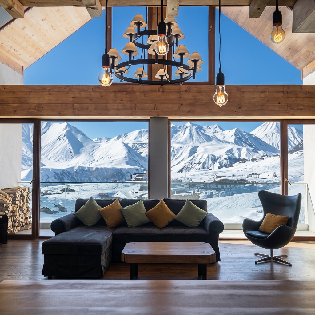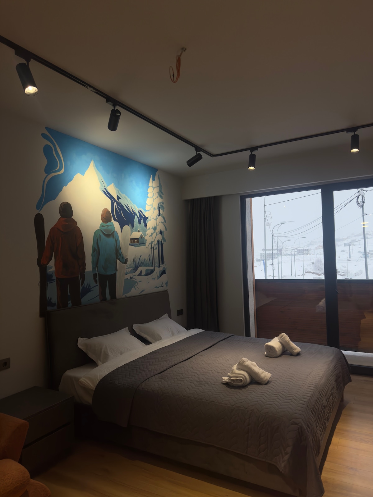 - Chemia Studio in Gudauri - has an unique Industrial style, designed by "Chemia Studio". Duplex apartment is made all handmade, with natural wooden, brick and steel materials. - Chemia Studio in Gudauri - offers an unique atmosphere with an enjoyable Hot tub for post skiing relaxation. Duplex entertainments include: 1. movie projector for movie nights; 2. Playstation 5 pro.