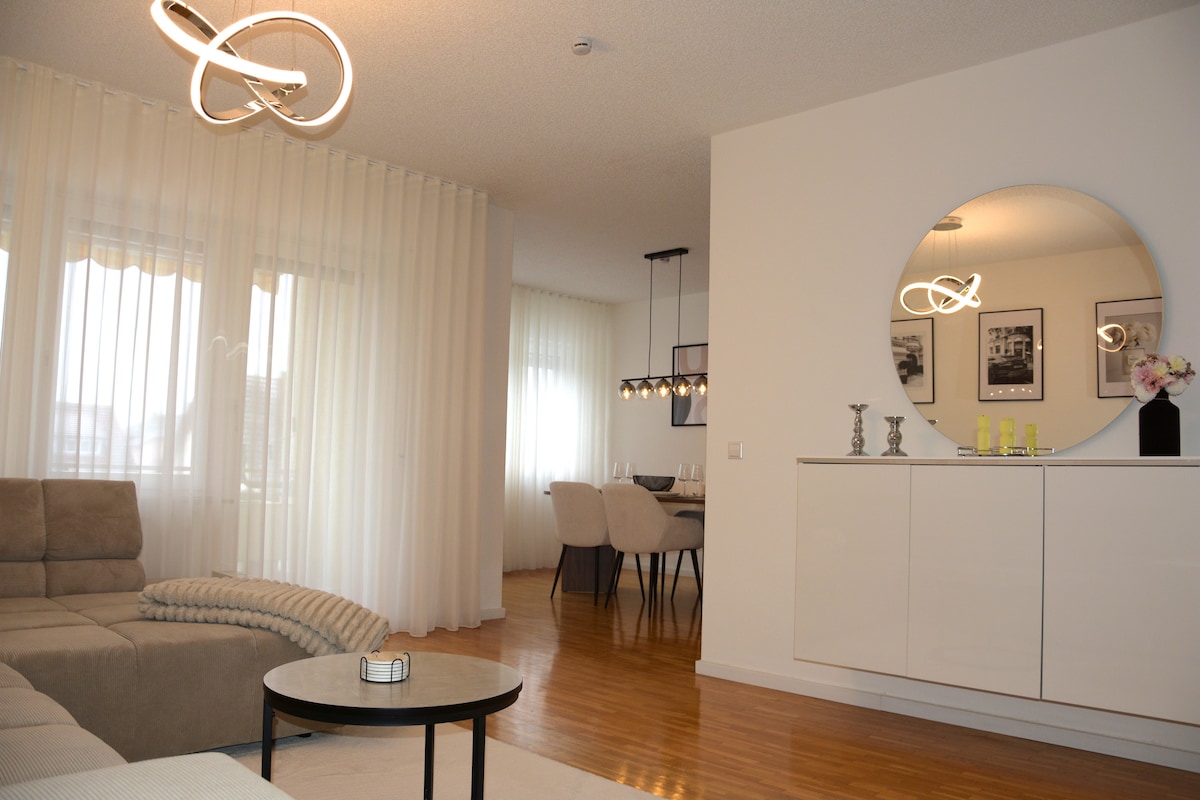 Our bright 3-room attic apartment is located in a rural area, but offers several shopping opportunities within a 2-5 min walk. The Swiss border is only a 5 min drive from the apartment. The apartment offers 2 bedrooms and a large living, dining and kitchen area. The apartment has its own balcony as well as a beautiful view from the skylight. Included are free parking, a washing machine and fast internet. Furthermore we offer our guests free access to Netflix, Amazon Prime Video and Disney+!
