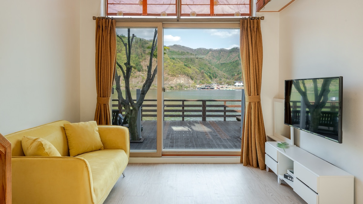 We have spacious Garden with lovely pine trees and seasonal flowers. You can feel healing and relax with our lovely calm garden. We have also small farm growing ingredient fruits. you can pick & enjoy eating for breakfast in summer season. You can take a walk along the riverside path near our house and enjoy water skiing and paragliding. Public transportation is also available. It's a 10 - minute walk from Asin Station on the Gyeongui-Jungang Line. Pick-up from Asin Station is also available.