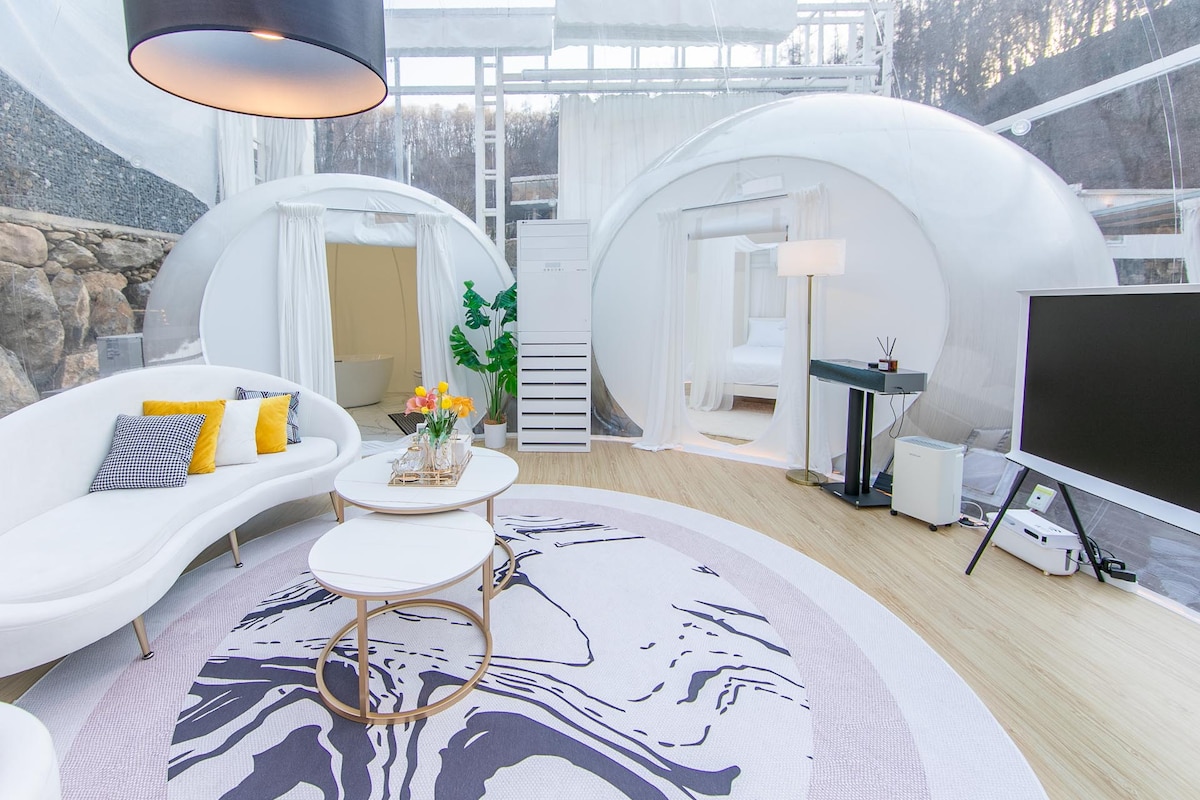 Spacious private retreat nestled in the serene nature of Gapyeong, offering the perfect setting for unforgettable moments. You’ll wake to warm sunlight and end your day beneath a sky overflowing with stars. With over 165 square meters of indoor space and over 1,300 square meters outdoors, is perfectly suited for family getaways, gatherings with friends, and workshops. Thoughtfully designed amenities and warm hospitality await, making your time with loved ones even more meaningful and enjoyable.