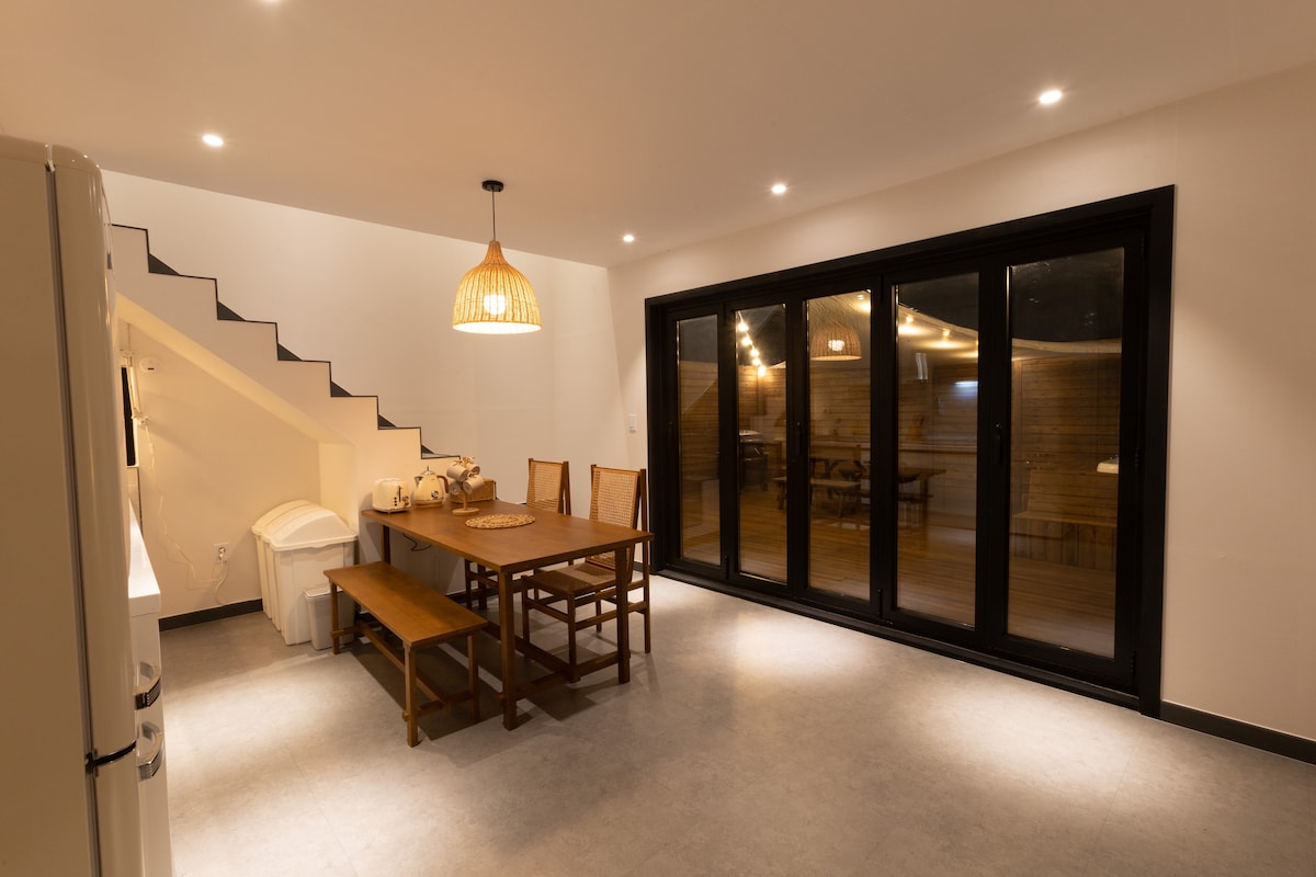 비대면 self check-in& out. 1층 게스트 마당(불멍,바베큐공간)과 숙소는 타인의 출입이 불가능 합니다. @마당, 야외테이블 단독사용 입니다. 공용 공간은 없습니다. @마당에 개인텐트 피칭 가능하세요. @바베큐는 숯&석쇠 준비요청 하시거나 준비를 해오시고 편한시간에 이용하시면 됩니다 :) 토치, 부탄가스는 제공해드려요. @장작 다시 판매합니다. 10kg 1.3만원 @강아지 탈출 방지용 울타리 설치되어 있습니다. @맹견제외 반려견13kg 이하 동반가능-동반비1만원(패드 및 식기제공) (예약시 반려견 동반여부 및 견종 알려주세요.) *침구류는 저희가 사용한다 생각하고, 매.번. 세탁한 침구로 준비해드려요! *3인이상은 지내시기엔 좁으나 꼭 원하시는분은 문의주세요. (2박 이상) 그리고 침구류 수량이 한정되어 앞뒤 예약 인원에 따라 수용 가능여부가 나누어지니 문의 먼저 부탁드립니다. *예약인원 이외 방문시 인당2만원
