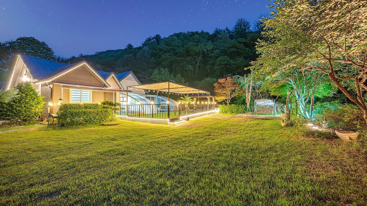 잠실에서 40분 거리의 위치해 바쁜 일상에서 벗어나 맑은 공기와 넓은 독채만의 아늑함으로 완벽한 휴식과 힐링을 원한다면 방문 추천드리는 "고요한 아침” 입니다. 호스트가 직접 관리하는 정원은 봄/여름/가을에 어울리는 꽃들로 가득하고 연못에는 잉어들이 살며, 사계절마다 각각의 매력을 온전히 느낄 수 있는 녹음이 짙은 산속 가운데 있는 곳 바로 "고요한 아침"입니다 :) 고요한 아침은 어린 아이들이 오랜만에 안전한게 뛰놀 수 있는 넓은 앞마당, 숙박공간과 분리되어 있어 냄새 걱정 없이 편하게 식사를 할 수 있는 단독 바베큐장이 매력적인 곳입니다. 특히 이번 바베큐장에 화장실을 새로 만들어서 편의성이 더더욱 극대화 되었습니다 :) 게스트를 위한 충분한 식기류와 간단한 조미료는 준비되어 있습니다.