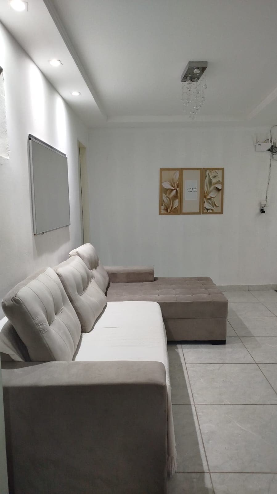 Ar condicionado quente/frio nos 02 quartos, sendo 01 suíte. Wi-fi. Portaria 24h. Rede de proteção nas janelas. Aceita pet pequeno. Informar na reserva A 3min do centro e FIG (de carro). Roupa de cama e travesseiros. Toalhas de banho. Ferro de passar Chapinha cabelo 01 vaga em Garagem. Segundo Andar em Condomínio Fechado, próx de padaria, mercado, farmácia… Sala de TV com Sofá cama e Vídeo Game Retrô, brinquedos infantis. Água e luz incluídos.