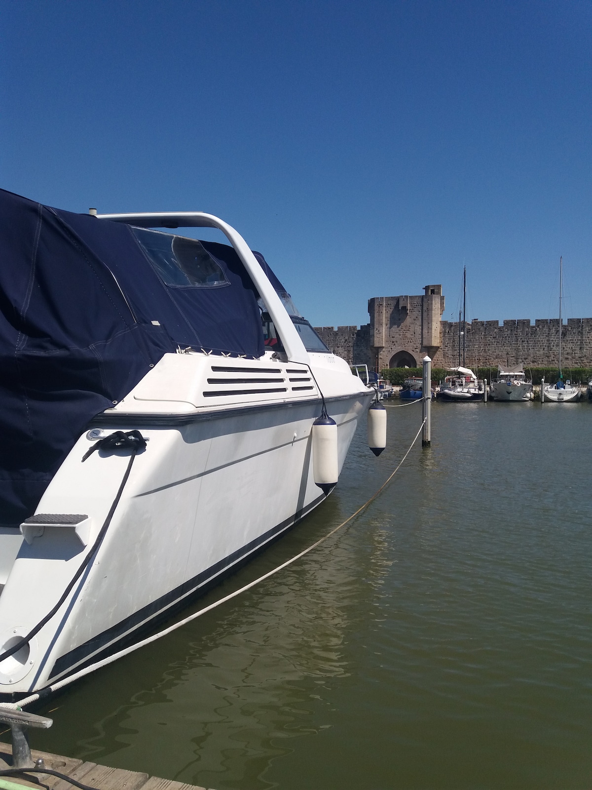 Bateau américain type offshore très bien situé au coeur du port d'aigues mortes. Avec toutes les commodités. Cinq minutes du centre ville à pied et de la tour de constance emblème de notre ville. Riche en patrimoine, coeur de Camargue. Salin du midi la baleine cinq minutes en voiture. Bateau très agréable à vivre avec une grande terrasse extérieur. Chambre double confortable et une petite pièce avec un lit simple d'appoint. Wc sdb cuisine.
