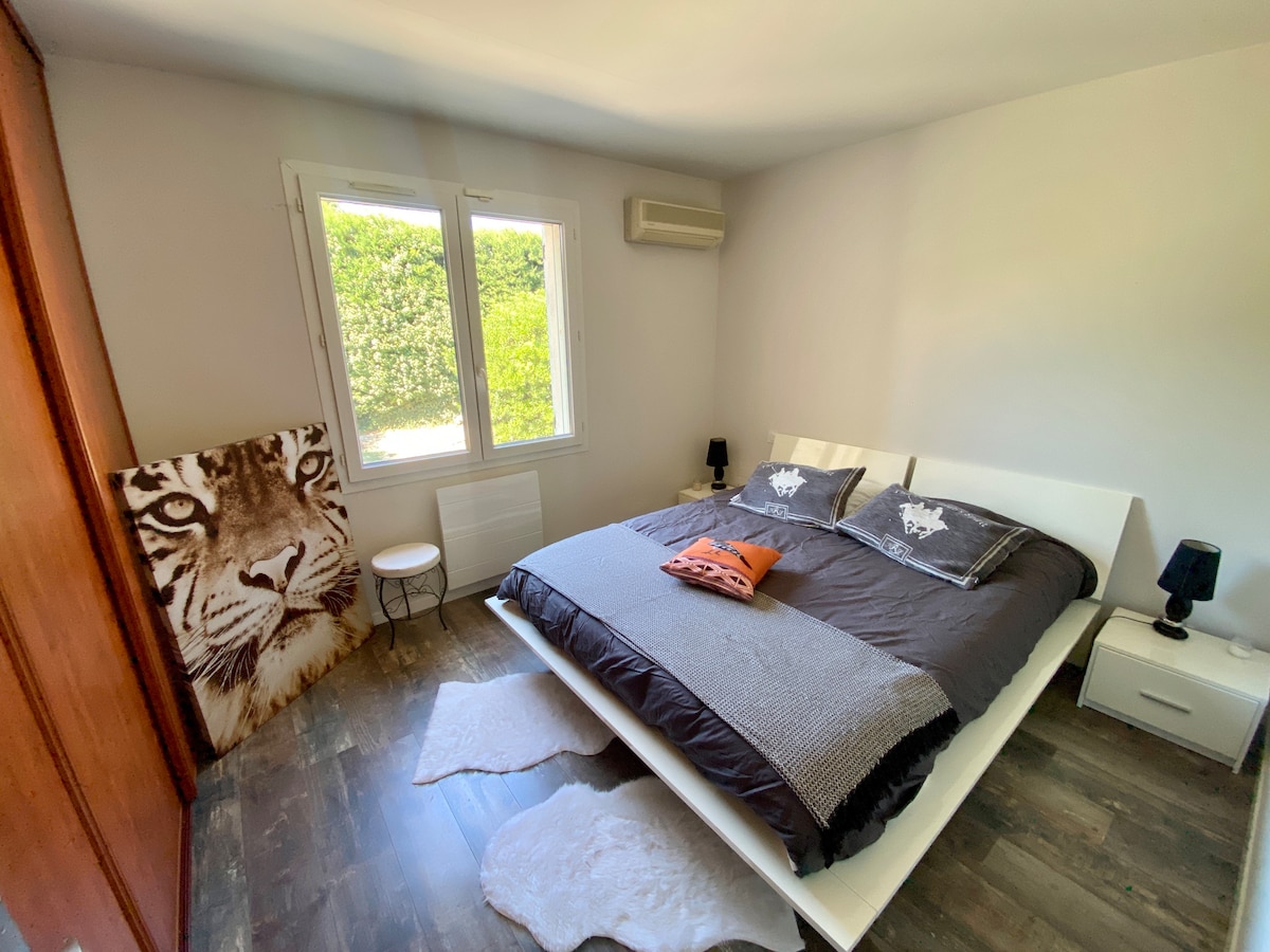 Agréable appartement climatisé comprenant une chambre avec grand lit(160) , une salle de bain avec douche italienne, lavabo,toilette, et machine à laver . Une grande pièce à vivre avec cuisine équipée ( four, micro onde , plaque de cuisson, frigo, lave vaisselle , grille pain , bouilloire , cafetière) , un coin salon avec 1 canapé et télévision , ainsi qu'un lit penderie mural ( 2 places). A l'extérieur : une terrasse privative avec salon de jardin , barbecue , transat et parasol .