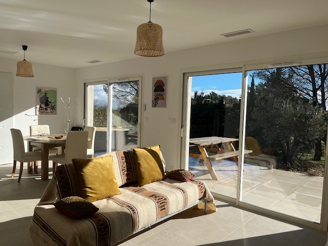 Loft très lumineux comportant Sauna, Filet Suspendu entièrement sécurisé, 100m2 de jardin privé, Chauffage au sol, Climatisation, 2 Lits queen-size 160cm, Douche Italienne, Barbecue extérieur avec sarments de vignes pour sublimer vos grillades! Idéal pour profiter de la nature et de la magnifique région du Pic-St-Loup! À proximité : Vignobles, Pic-Saint-Loup (Randos à 5min), Les Matelles (médiéval-5min), Montpellier (20min), plage (30min), Cévennes (30 min), Saint-Guilhem-le-Désert (30 min).