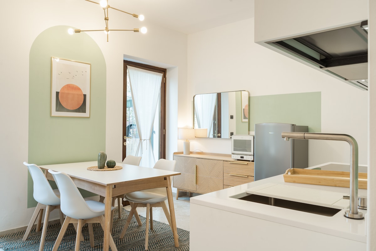 Garda Tranquil Escape - perfect place for autumn and winter holidays, a cozy retreat just a 10-minute walk from Lake Garda, lovingly created by us! Discover this charming apartment in a condo with a swimming pool and private gardens. It’s conveniently located close to Lake Garda, a children’s playground, and a supermarket. You’ll have easy access to the historical centers of Desenzano and Sirmione (12’ by car). Enjoy free parking (indoor and outdoor), with bus stops just 5’ away