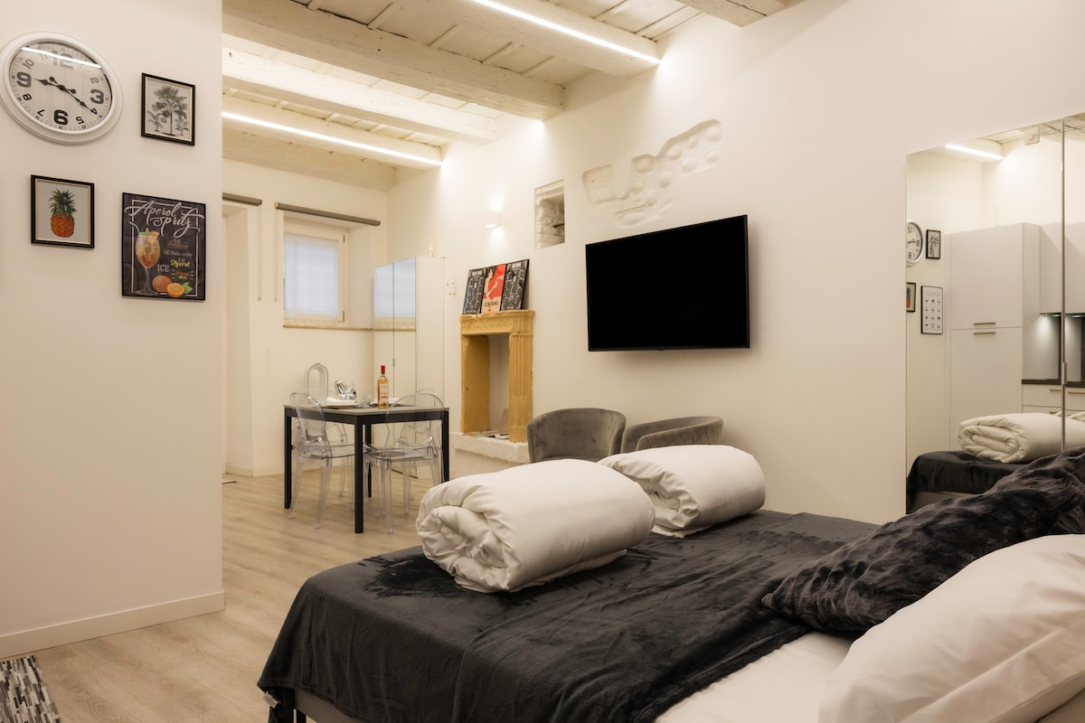 Elegante monolocale nel cuore di Verona, a pochi passi da Piazza Bra e dall’Arena. Arredato con gusto contemporaneo, offre letto matrimoniale, angolo cottura attrezzato, bagno moderno con doccia e set cortesia, Wi-Fi veloce, aria condizionata e Smart TV. Ideale per coppie o ospiti business che desiderano comfort, privacy e posizione centrale. Parte della collezione EAP Suites Verona, con assistenza dedicata e accoglienza curata nei minimi dettagli.