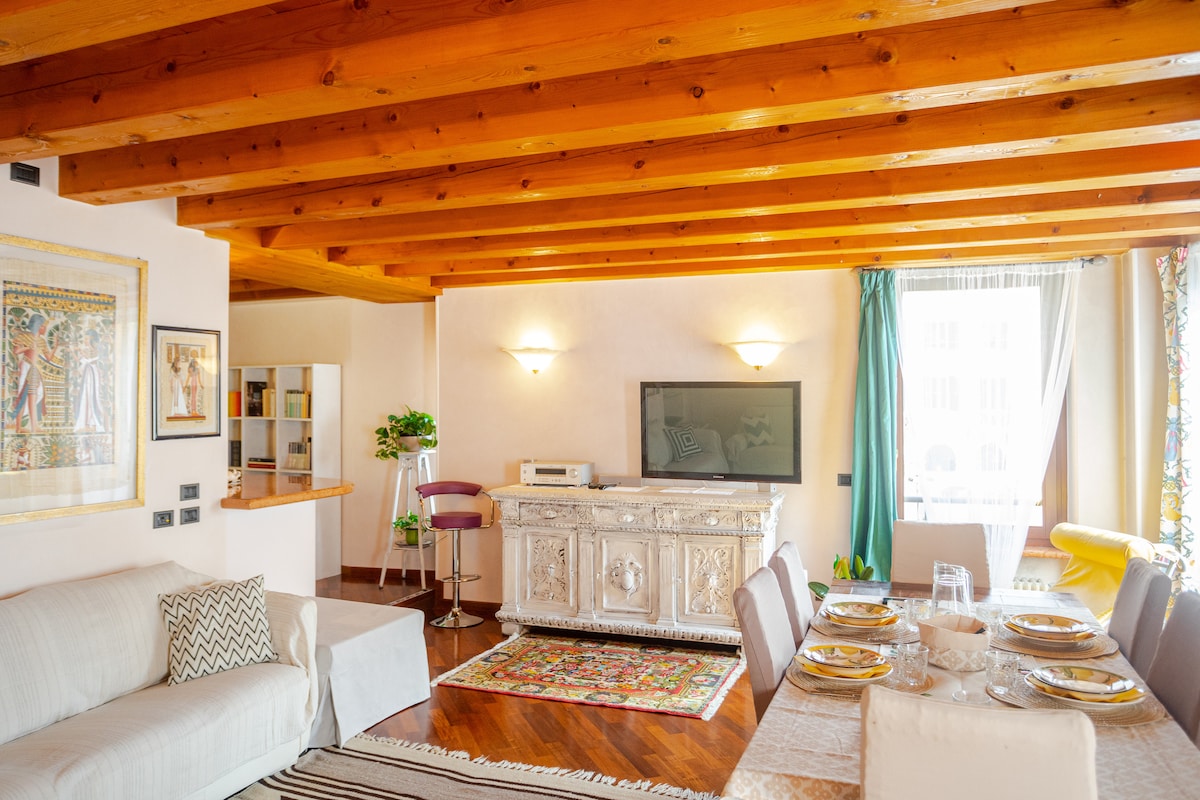 Romantico ed elegante appartamento all'ultimo piano di una palazzina storica, servita da ascensore, in centro vicino al Castello Scaligero e all' Arena; la casa di Giulietta e le principali attrazioni si raggiungono a piedi in pochi minuti. E' possibile parcheggiare gratuitamente sulla strada a ridosso della struttura con un permesso che verrà consegnato al momento del check in, da restituire al check out. La tranquillità e la connessione internet in fibra lo rendono ideale anche per lavorare.