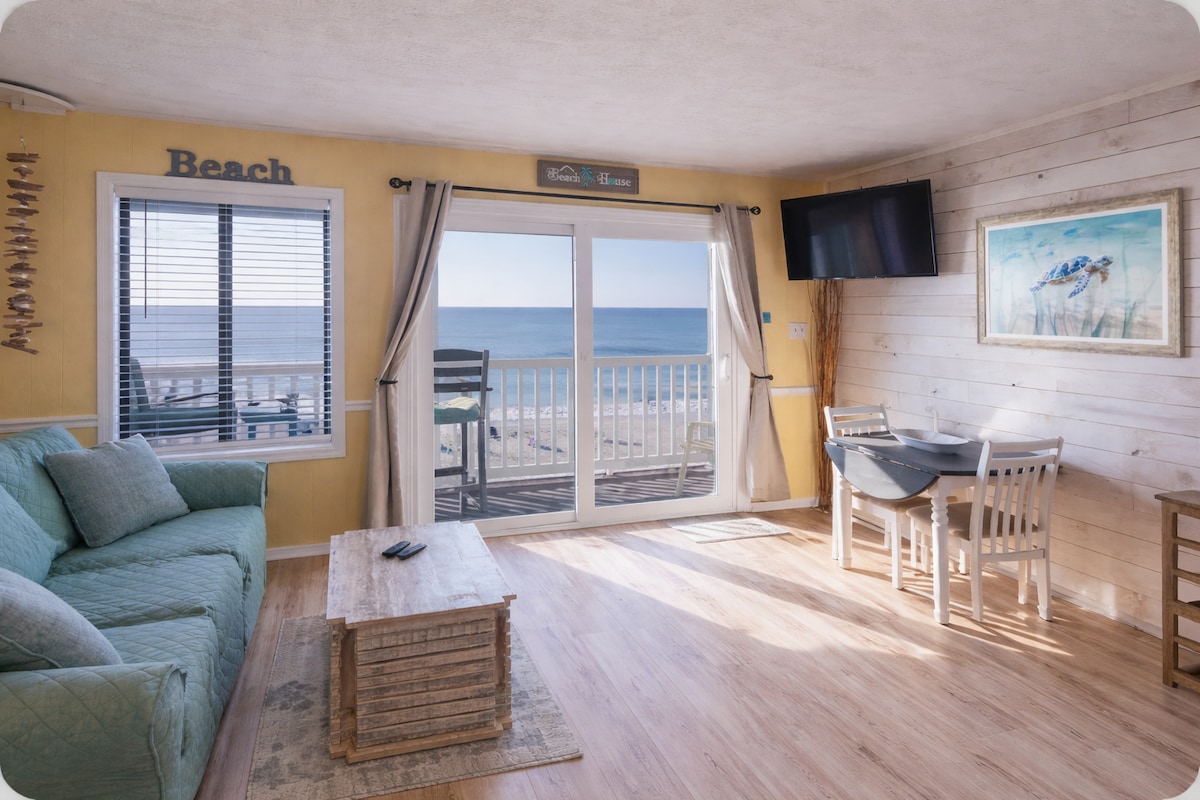 No shoes needed! Step right onto the beach from this bright and airy 1 bed, 1 bath condo. The direct oceanfront space comfortably sleeps 4 and is in the perfect location just 1/4 mile from Garden City Pier. This popular, yet quiet building offers a peaceful and serene getaway for families, couples or friends. Enjoy free parking, a full kitchen & beach supplies you can sit back and relax. The location is away from the hustle and bustle yet close enough to enjoy all the grand strand has to offer.