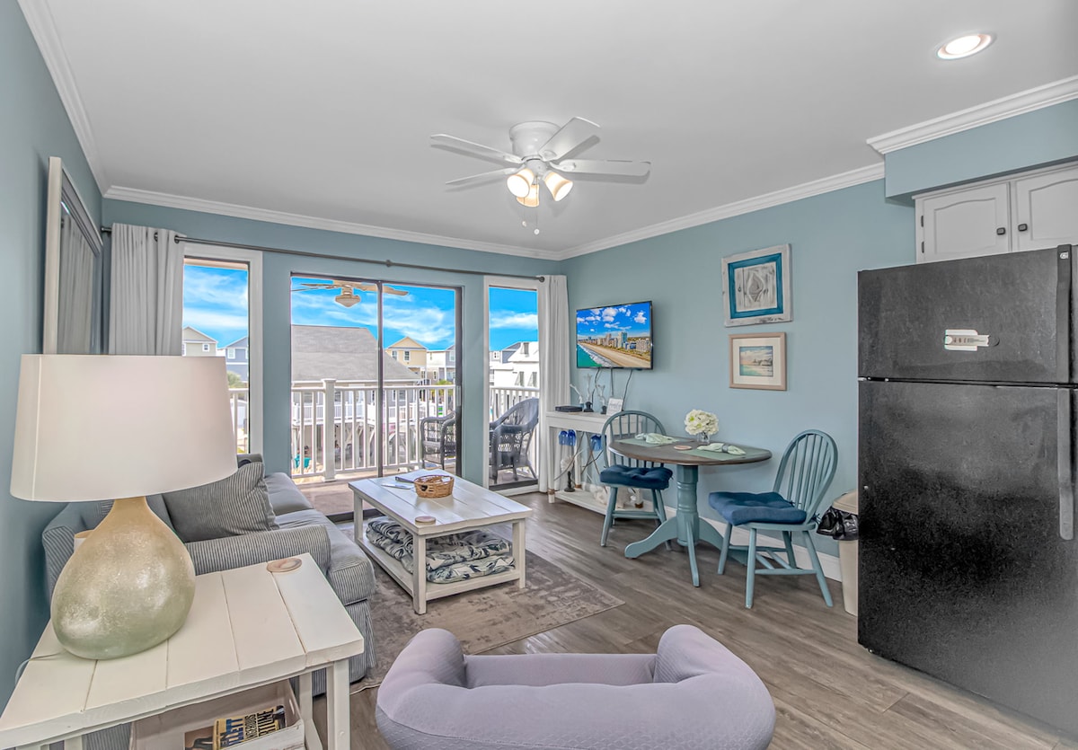 This condo at Camelot by the Sea is centrally located to the heart of Myrtle Beach both driving and walking. Find the beach just a few steps away. The newly renovated condo even offers a fully functional kitchen with everything you need to make this your next WFH getaway stay-cation. Comfy living room with a fold out sofa bed. Catch all of your favorite entertainment on one of the two large LED TVs, or better yet, enjoy the multiple pools, hot tub, and a lazy river that you can float in all day.