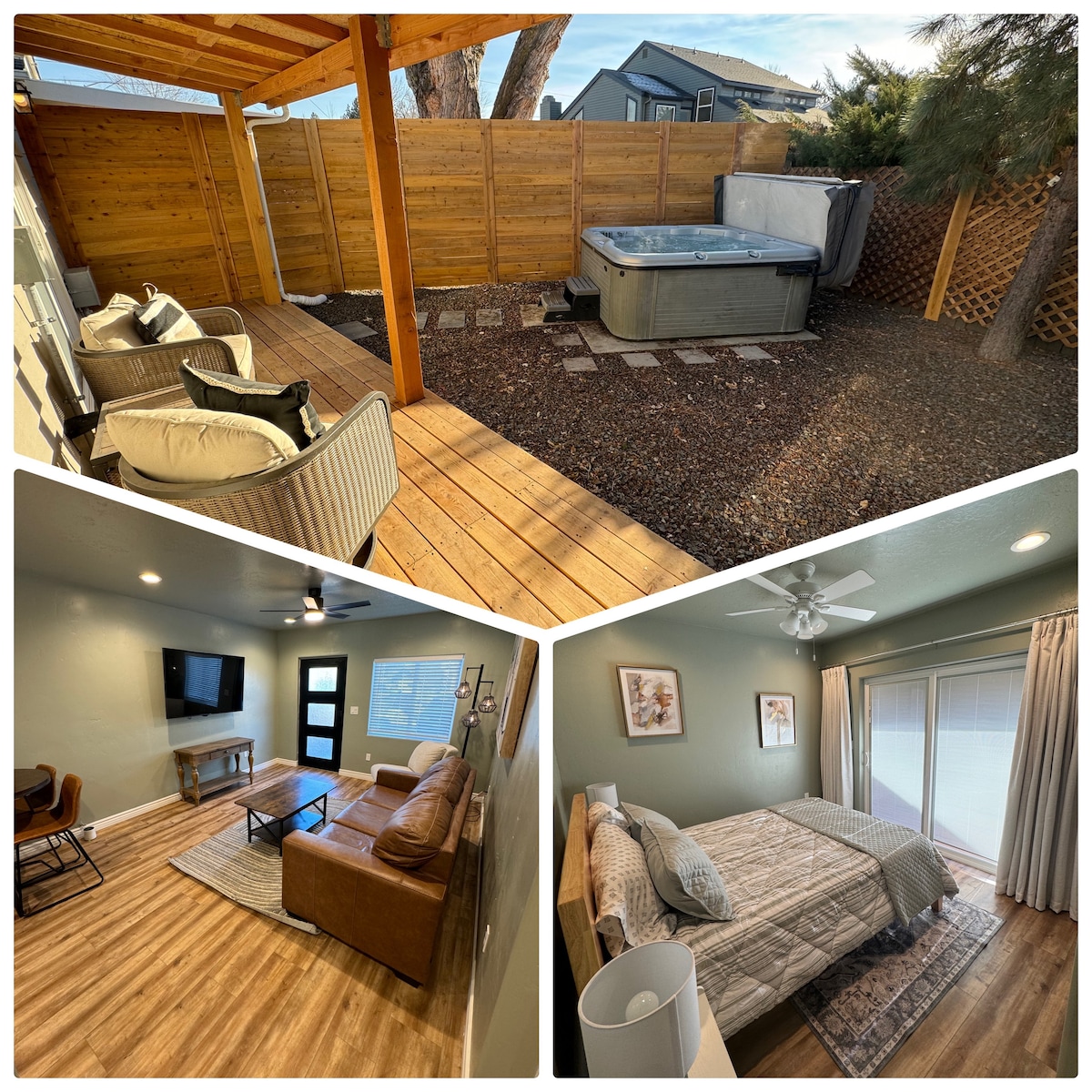 Welcome to Tangerine Dreams, your perfect little private oasis in Boise! You'll instantly relax in this cozy, cheerful, and private studio in a quiet neighborhood. The secluded outdoor space boasts a hot tub, fire pit, and lounging area for you to unwind after a day of work or play! Amenities ⟡ Hot Tub ⟡ Fire Pit ⟡ Pizza Oven ⟡ King Bed ⟡ Free Off Street Parking ⟡ Coffee&Tea Local Attractions ⟡ 4 Mins to BSU ⟡ 4 Mins to Airport ⟡ 7 Mins to Downtown ⟡ 45 Mins to Bogus Basin