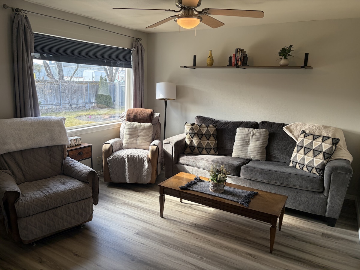 Our cozy corner house is within 900 feet to the popular greenbelt where you can enjoy the Boise River and a variety of activities. Take in a Boise Hawks baseball game or head to the fairgrounds or see a concert at the Revolution Concert House, all within a 1 mile drive. If you like skiing, Bogus Basin Ski Resort is 22 miles away. Many restaurants, shopping and social gathering places close by. This house is a comfortable modern home located in a quiet neighborhood. You will not be disappointed.