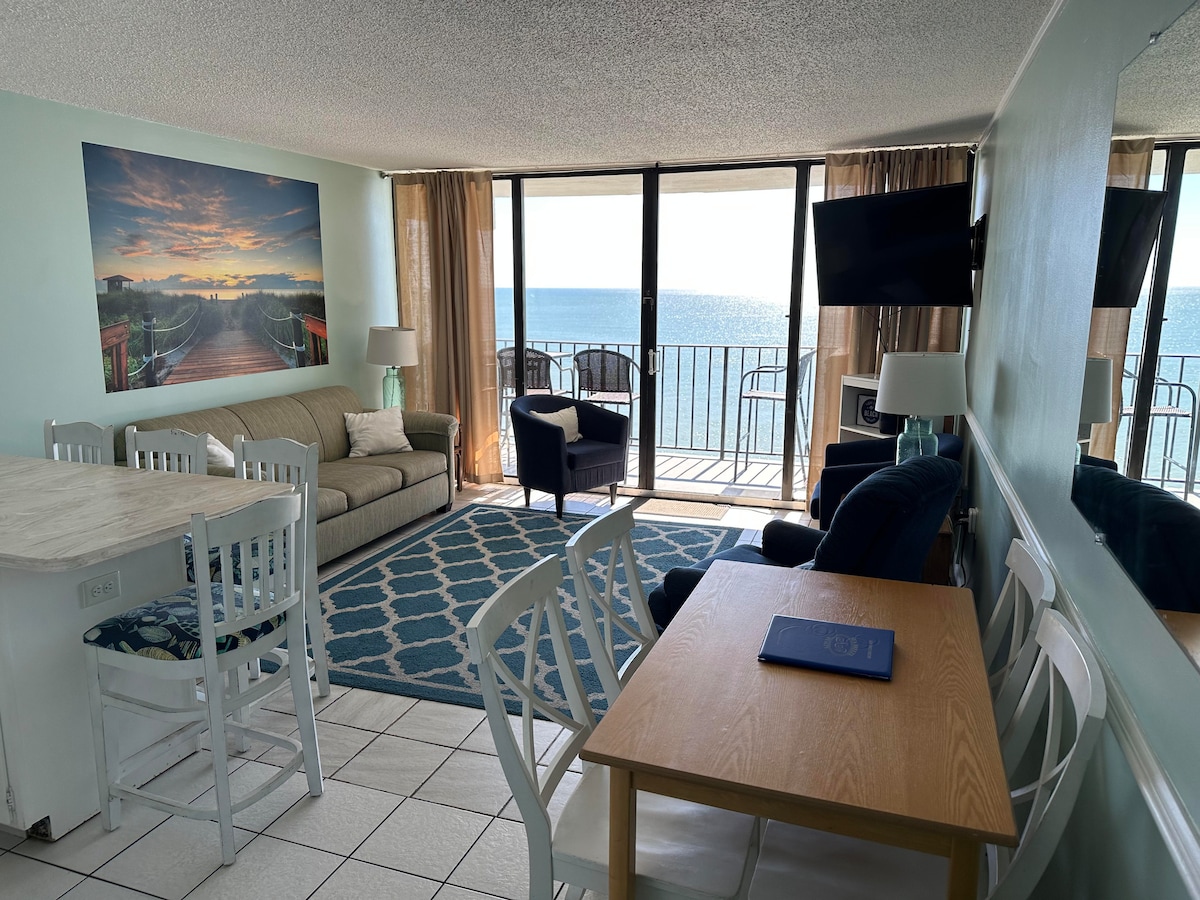Featured on HGTV's "Beach Front Bargain Hunt"!- Beautiful, recently upgraded, oceanfront condo, right on the beach! Both the living room and bedroom have ocean views. There is a King Size bed in the master bedroom and King bed in 2nd bedroom. 3 TVs, one in each room. and one large TV in the living room. There’s a Murphy bed and sleeper sofa. Close to the new pier, shopping, dining and golfing. There is 1 security camera on the walkway leading to front door. It’s always on.