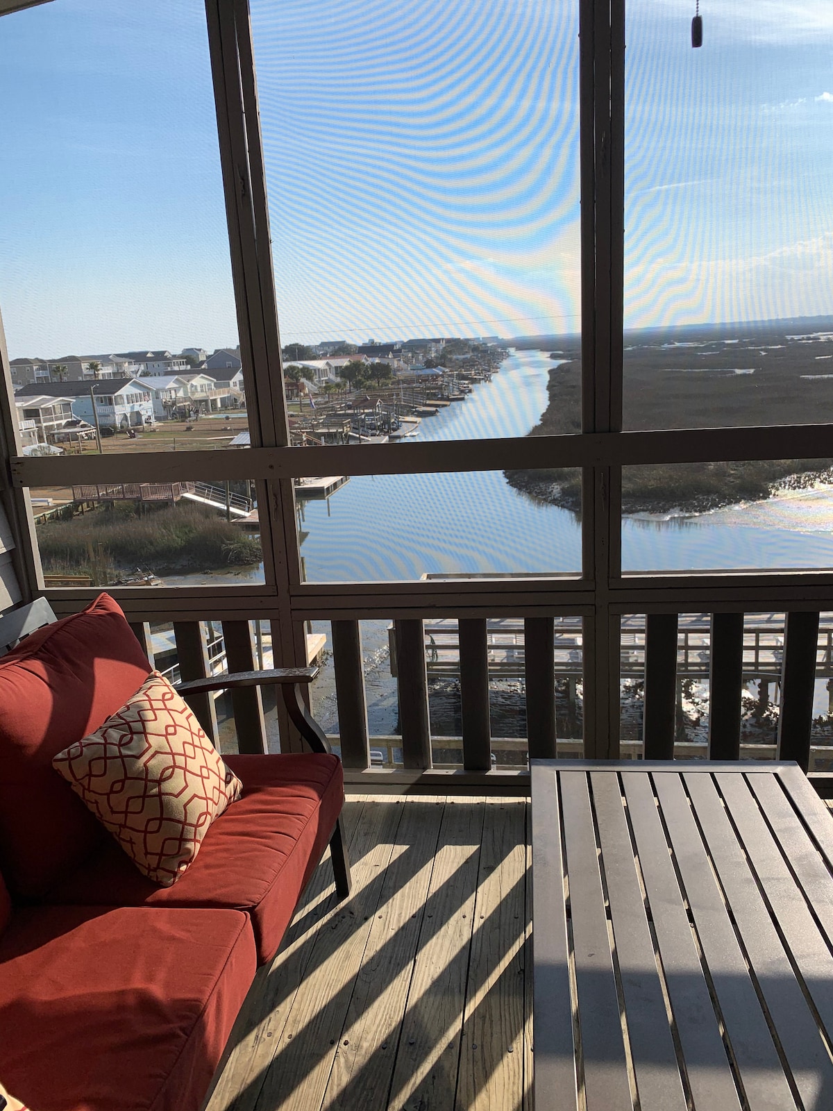 Garden City Beach- spectacular sunset views over the Marsh. Seawatch Inn 305 at the Landing gives you a third-floor panorama from your screened deck. An elevator makes access a breeze both to the swimming pool, hot tub, and fishing/crabbing deck. Golf cart rental if available. Launch your kayak or paddle board from the private boat ramp. This two-bedroom, one bathroom condo is fully equipped and has everything you need. No license required for fishing on the private dock. Jo