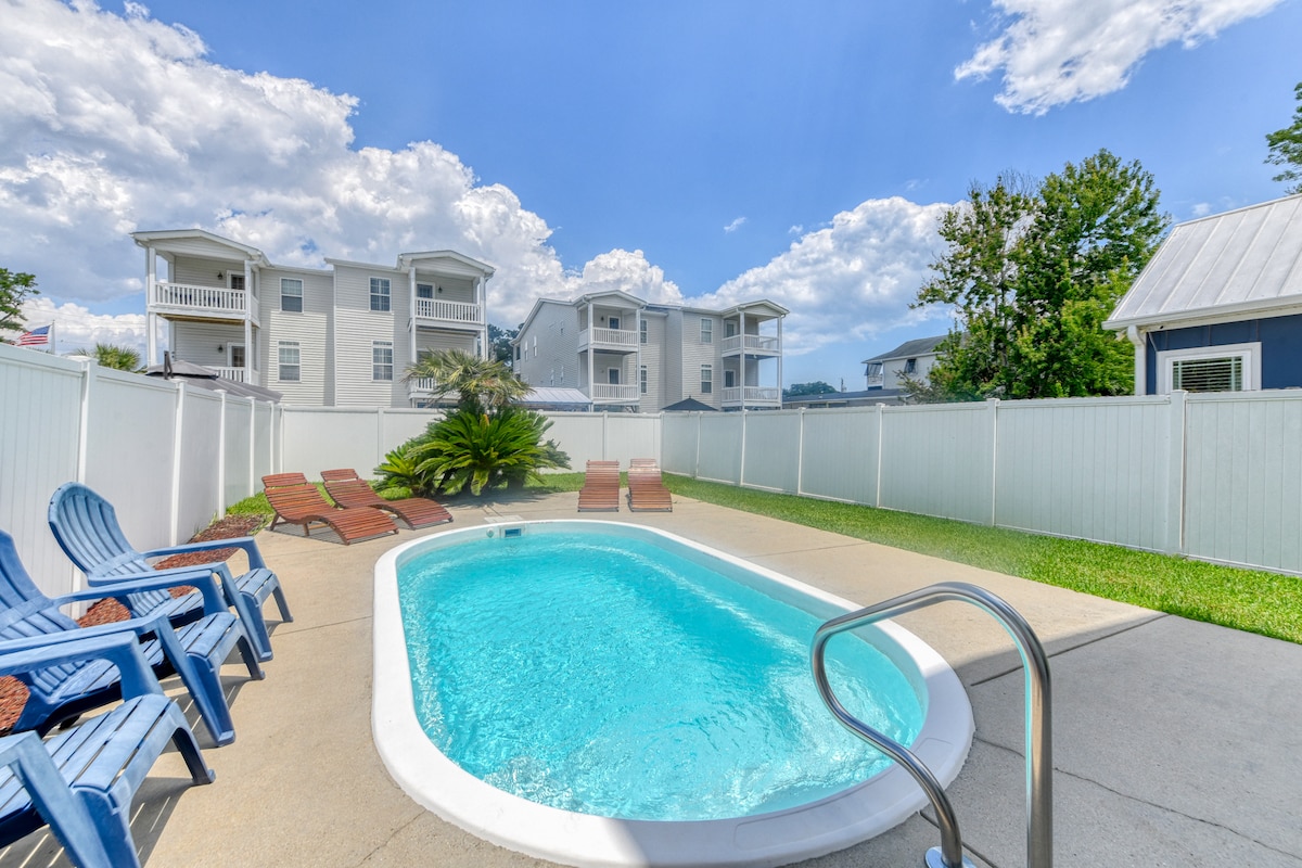 Soak up coastal fun in our 3-bedroom getaway close to the famous MarshWalk. Splash in the private pool, battle in the led lighted game room, then zip to dinner in the FREE golf cart. 3 spacious bedrooms & comfy linens Full kitchen plus BBQ grill Smart TVs, fast Wi-Fi, and games Yard games, Pool and Ping Pong Table and more Golf cart to live music, seafood, creek-side sunsets and the BEACH. Find your perfect day here! Book now and claim your preferred dates while they’re still open!