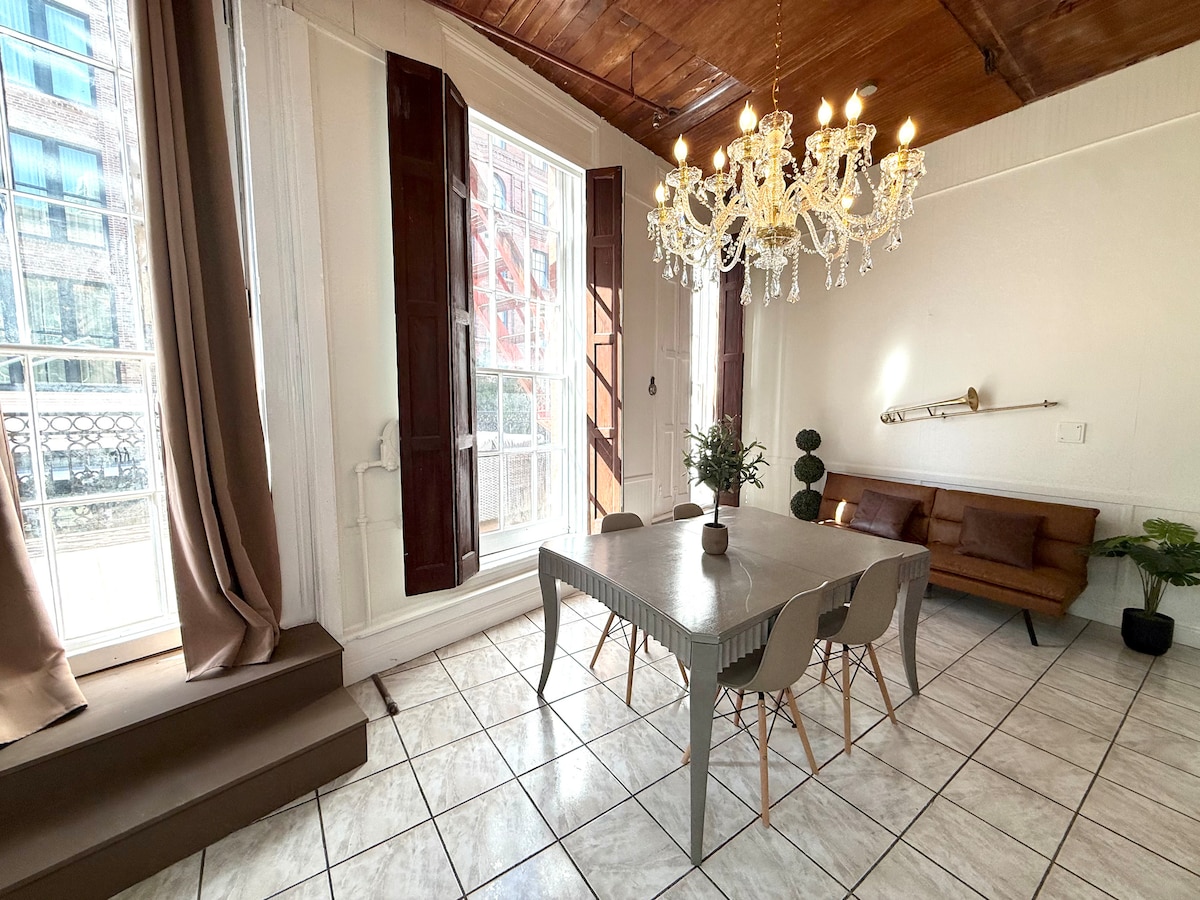 ⭑ Welcome to The Black & Gold ⭑ This stylish two-bedroom, two-bathroom suite features exposed brick, original wooden beams, and a spacious private outdoor area—blending New Orleans charm with upscale comfort. Perfect for couples, friends, or small groups, The Armstrong includes a fully equipped kitchen, indoor dining for six, and a bright living area in the heart of the Warehouse District. Just steps from the French Quarter, it’s your perfect base to explore the city.