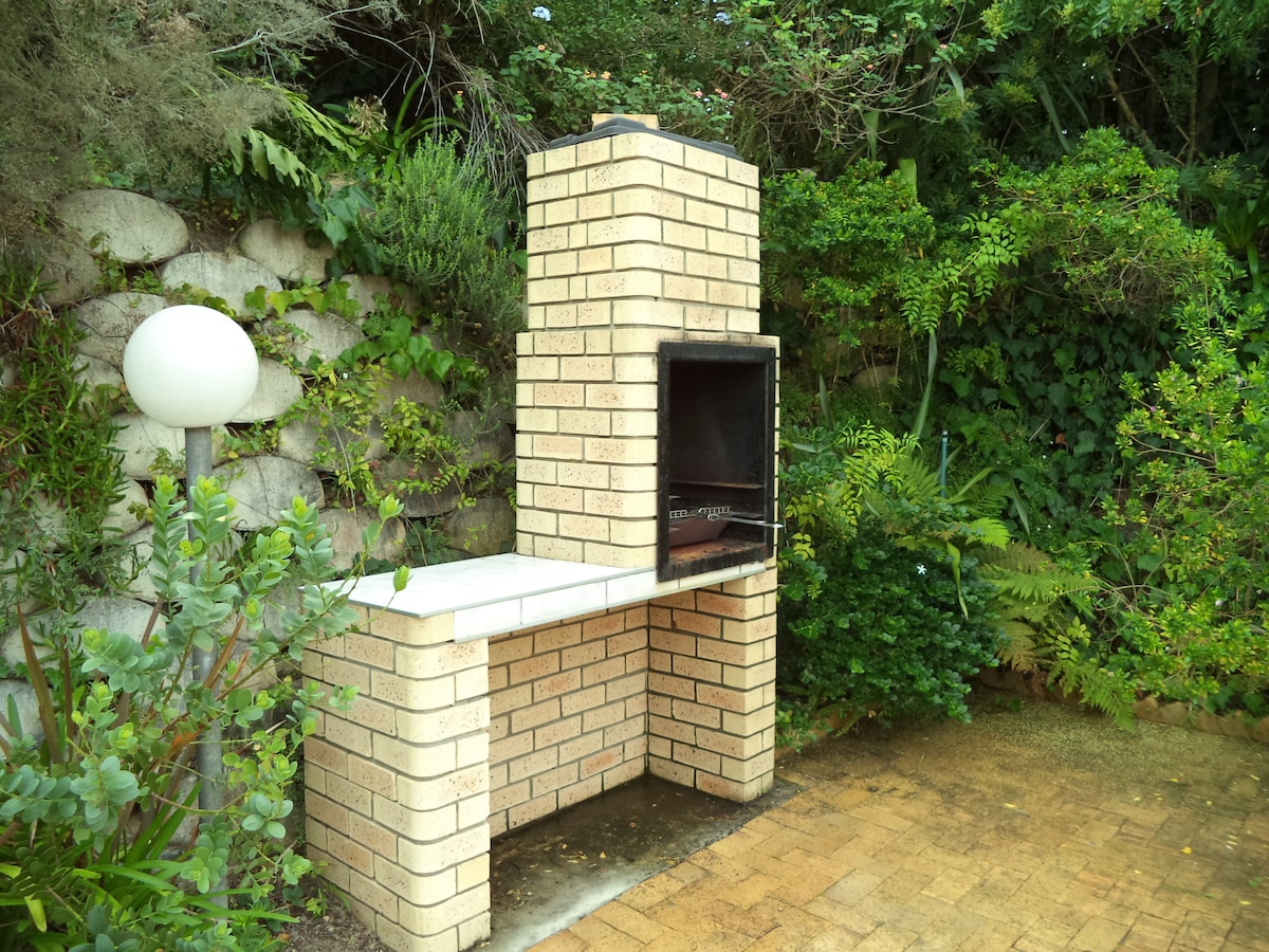 Spacious, free standing cottage for 2 adults. Queen bed, separate large lounge & kitchenette. Central, very quiet location, own private, sunny garden. Furnished for carefree, self catering holiday living. Walk through a beautiful neighborhood to blue flag beaches (3 mins) between Beacon isle hotel & Robberg reserve. Park under a large, covered carport behind an electric gate inside a fully walled, secure property. Strictly no smoking, vaping ok. Note we don't do Rage or proxy bookings.