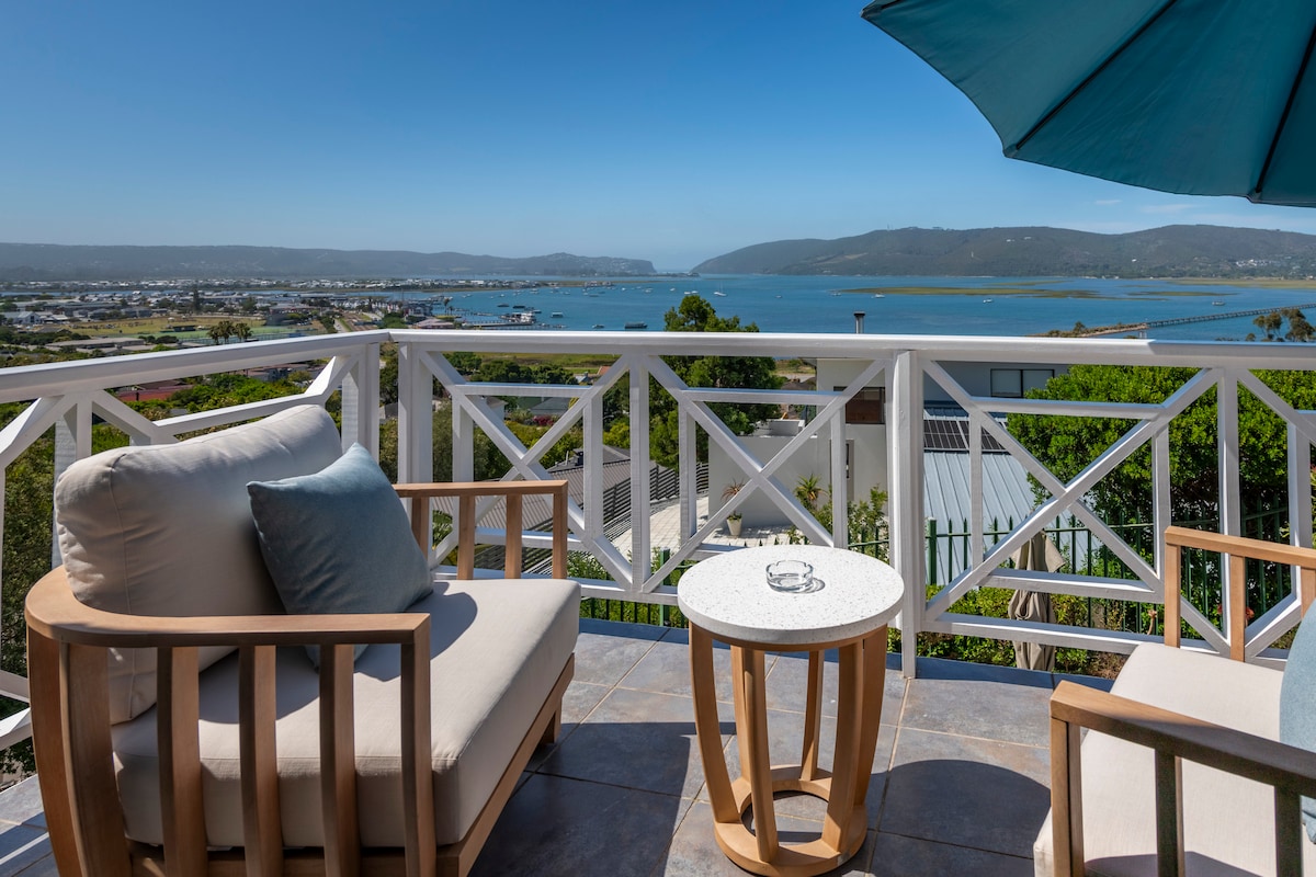 Wake up to breathtaking views of the Knysna Lagoon and Heads after a good night's rest on a queen size bed with crisp cotton percale bedding. Have your coffee on the intimate deck , where you can overlook the Knysna lagoon and listen to the birds chirping - allowing you to escape from your normal hustle and bustle, into complete serenity. We have an alternative power source, so no more loadshedding during your stay!