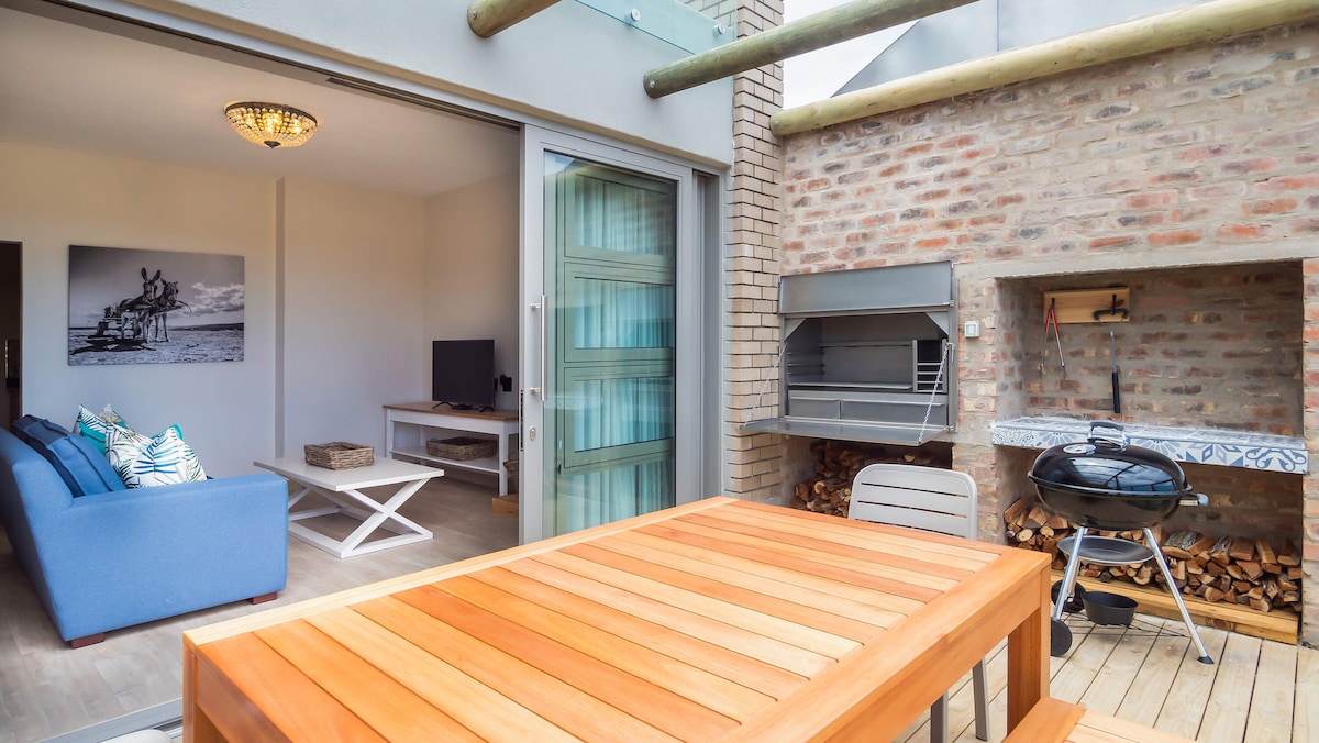 The Apartment offers a queen size bed with high quality linen and duvets, a kitchen with stove, microwave, fridge/freezer and cutlery and crockery. En suite bathroom with shower. Private balcony with gas BBQ Own entrance Free high speed wifi and full DSTV high quality linen and towels provided Free bicycles for our guests