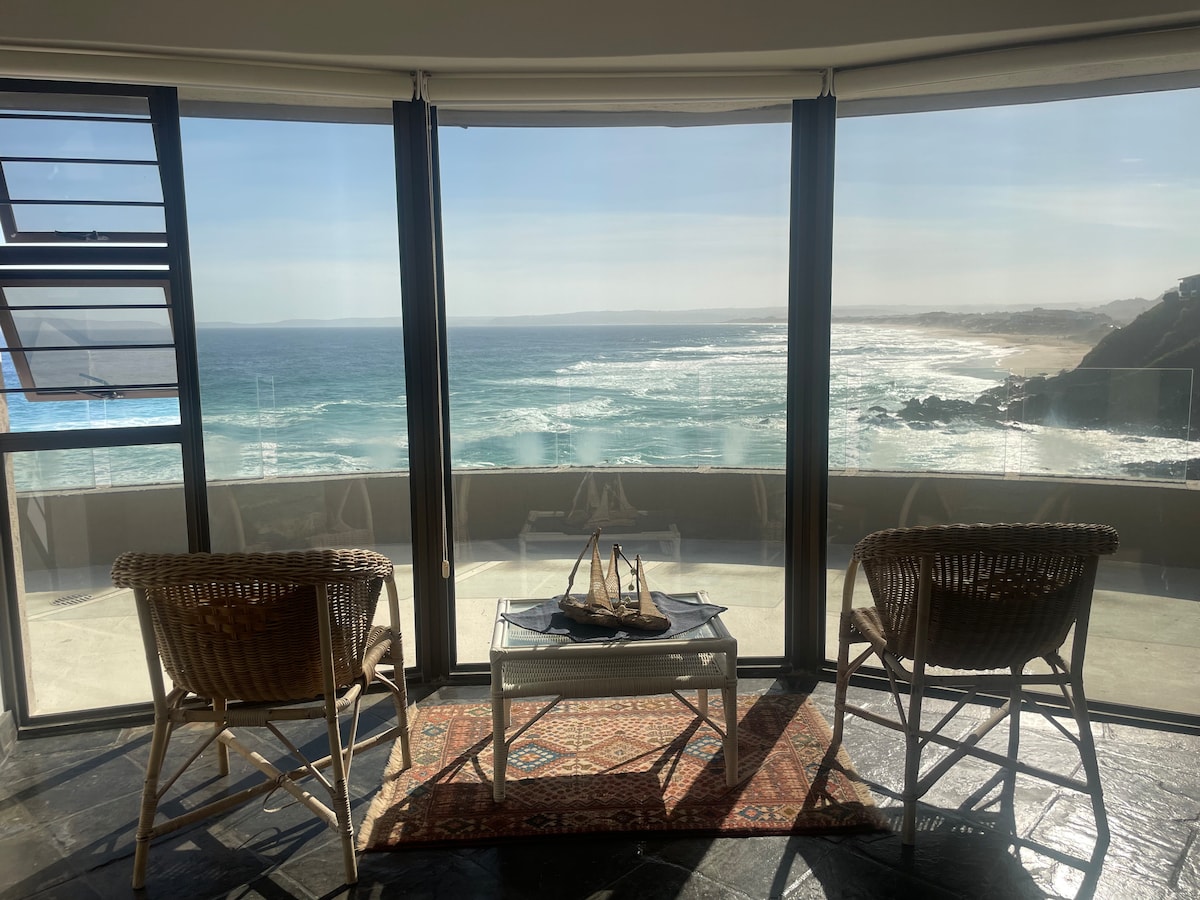Experience the ultimate coastal lifestyle in our luxury cliff-top home with stunning ocean views from every room. Our organic modern design features natural wood and designer soft furnishings. Dip in our semi heated pool, or enjoy our yoga & chill deck or cook a meal in our designer kitchen. Complete with solar power system & set in a private nature reserve. Just 25 mins from George Airport, 15 mins from the Garden Route Mall and Wilderness. Come unwind in comfort & style.