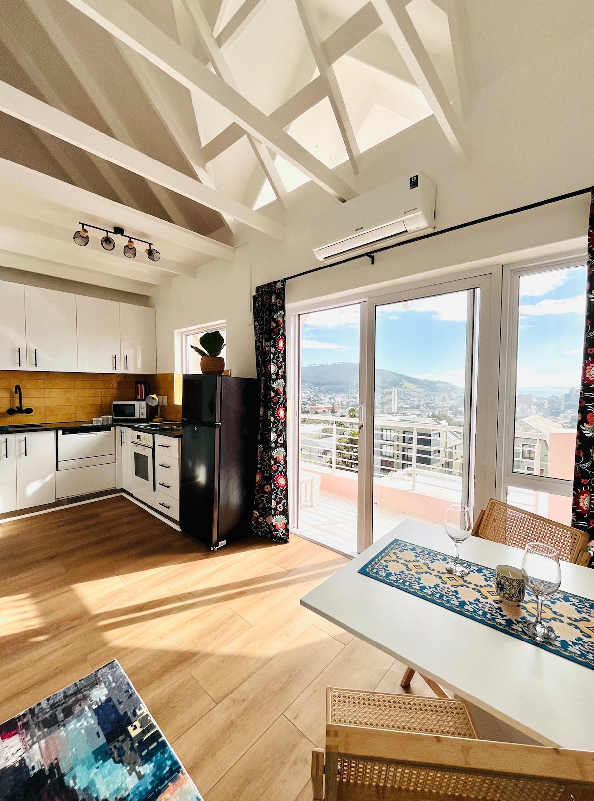 A magical home for exploring Cape Town. This centrally located penthouse is the perfect base for an unforgettable trip; fully furnished with all the comforts you could wish for - an antique bath, XL King-size bed, automated blinds, 55inch Smart TV with Netflix, a fully equipped kitchen, bathroom and wardrobes. Spectacular 270 degrees views of Table Mountain, Lions Head, Signal Hill, Company's Gardens and the idyllic City skyline. From sunset to sunrise you will be spoilt with movie backdrops.