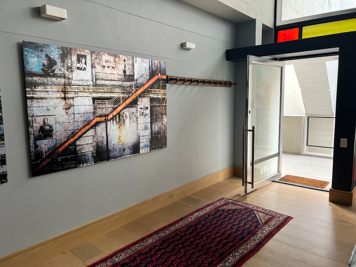 The vast open-plan apartment features soaring ceilings, a blend of industrial finishes and boutique design, and pops of color throughout, as well as a spiral staircase to a raised bedroom with a bathroom. The main area has separate bedroom with a huge bathroom. Extremely spacious and bright. Floor to ceilings are 4,5 meters. It’s well equipped with custom made furniture, art books, and fast internet/Netflix premium. It's located in of East City, the (newest) trendy area in central Cape Town.
