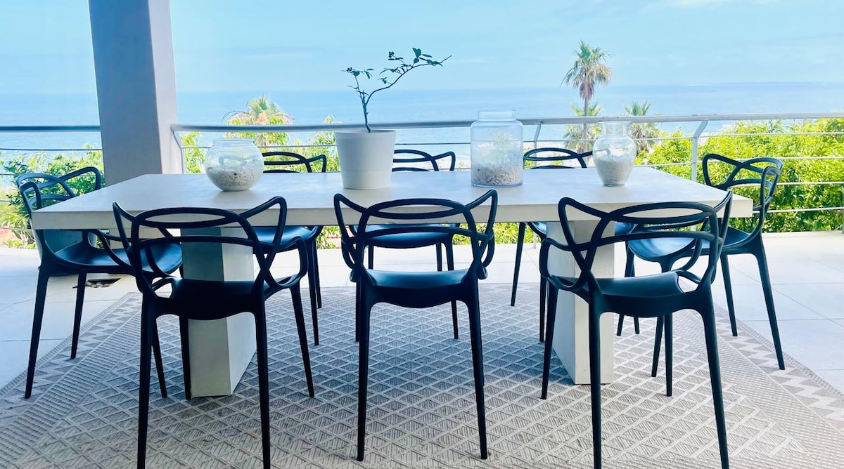 Guests can unwind and recharge at the property's Eco pool, which offers stunning views of the iconic Table Mountain. For those seeking ultimate relaxation the breathtaking ocean views from the big terrace is a must. The vintage decor accents blend seamlessly with the home's natural materials, creating an ambiance that is both unique and inviting. This retreat offers guests the perfect opportunity to escape the hustle & bustle and experience the perfect blend of luxury, nature, and tranquility.