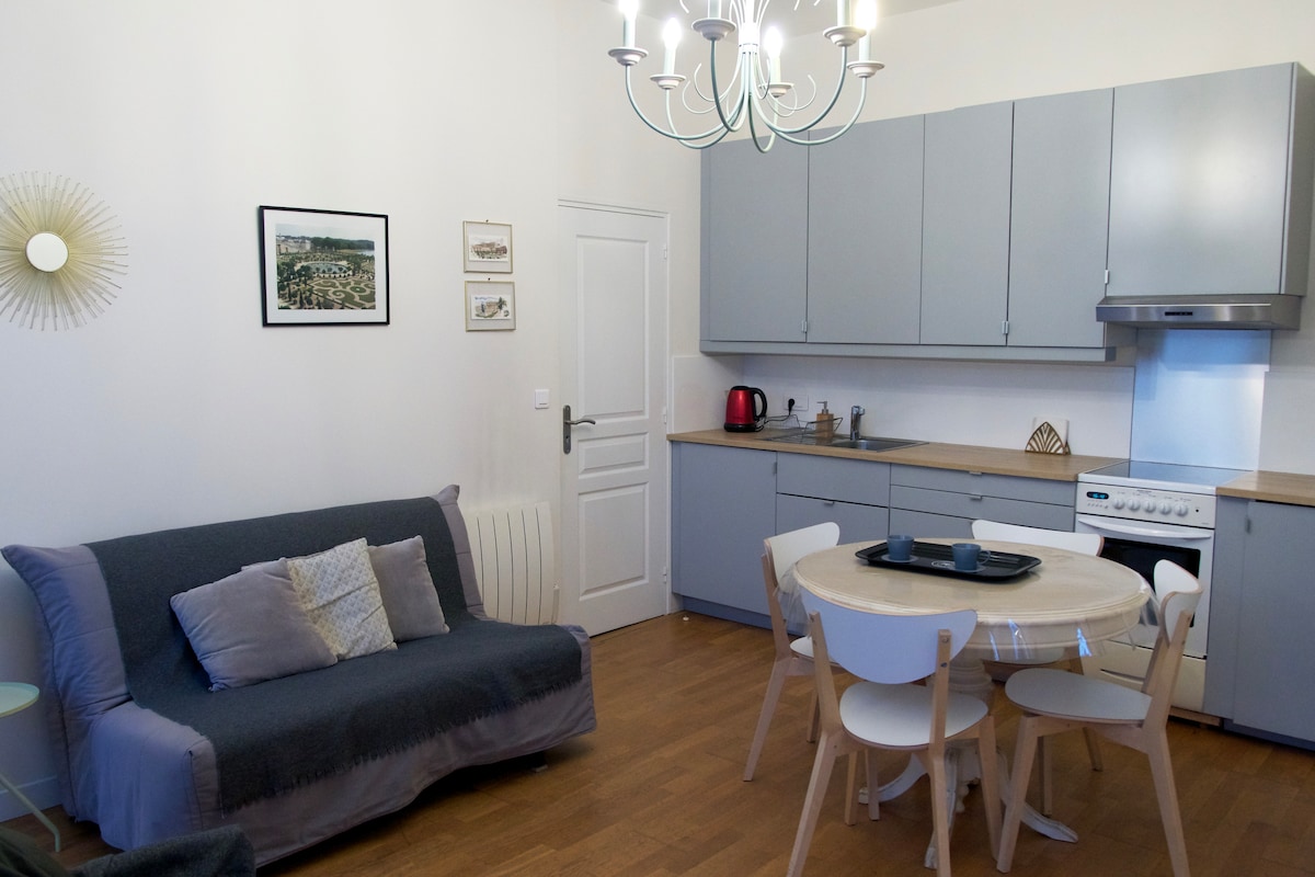 You will spend a pleasant stay in my pleasant and bright 34 sqm apartment ideally located in Versailles. You will be close to the castle of Versailles. The apartment is equipped to accommodate 4 travelers, it has a double bed and a sofa bed. A washing machine, wifi and a hair dryer are included. Linens and towels will be provided. 1st floor without lift For more information feel free to read the detailed description below. :)