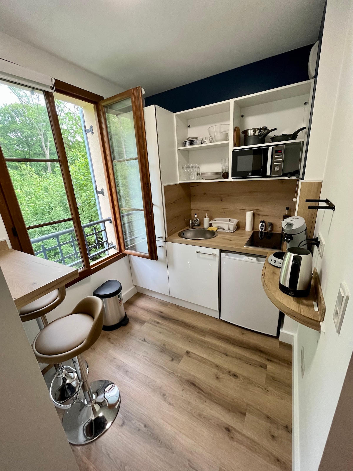 Charmant studio entièrement rénové de 17 m² au cœur du quartier historique Saint-Louis à Versailles ✨ À seulement 10 min à pied du Château et 5 min de la gare Rive Gauche, profitez d’un emplacement idéal, au calme sur cour intérieure 🏡 Lumineux et cosy, il offre une cuisine équipée, un lit mezzanine confortable et une salle de bain avec douche & WC. Parfait pour un séjour à deux ou un déplacement pro 🌿😊