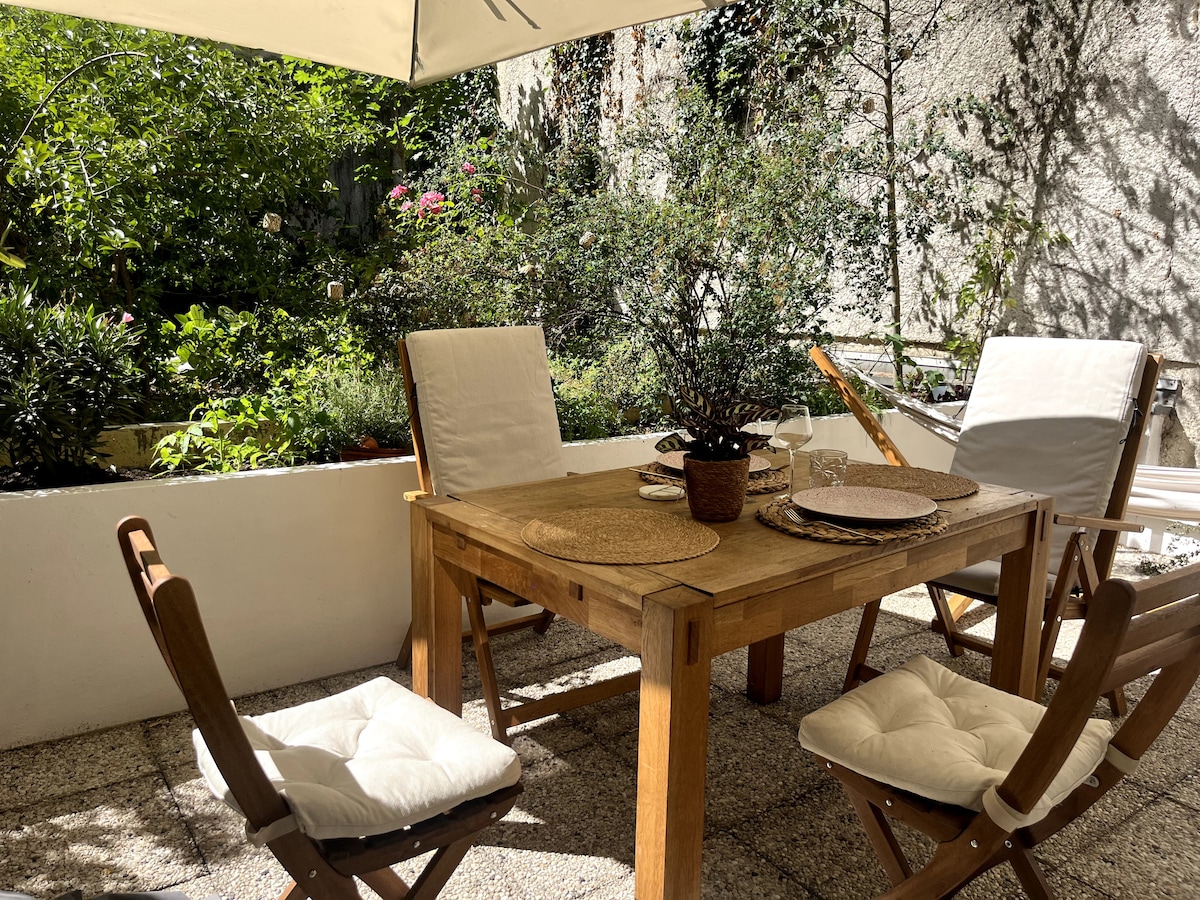 Quiet and safe flat in the heart of Paris, 5 mins walk from Jardin des Plantes and 10 mins from the Seine riverbanks and Mouffetard Recently renovated, it offers a large south-facing terrace with hammock and view of a private garden, one bedroom with double bed, living room with sofa bed, fully equipped kitchen, bathtub Metros: St-Marcel (Line 5), Censier-Daubenton (7), Austerlitz (5, 10, RER C) 25 mins walk to Pantheon, Luxembourg Gardens, Notre Dame Cathedral, Emily in Paris, Bastille