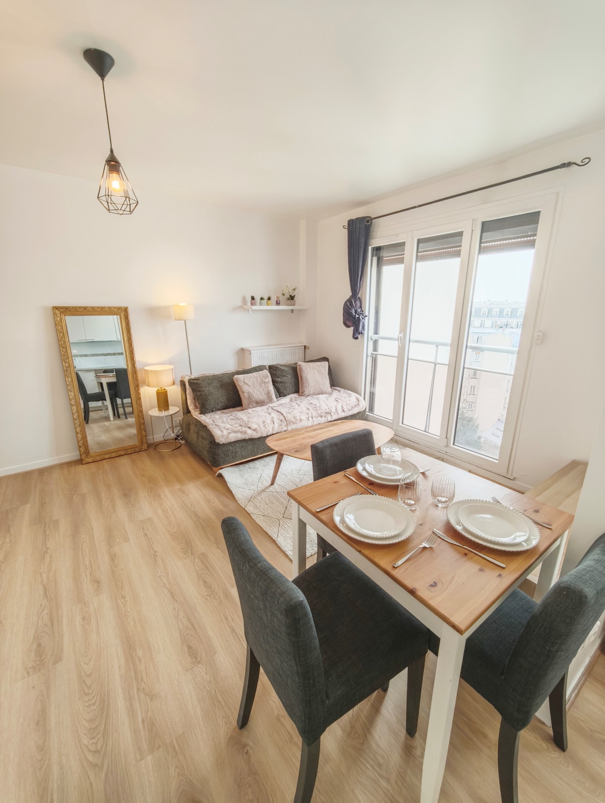 This bright flat is the perfect base to discover the charm of the lively 11th district. Unwind in the living room after a day of adventures, enjoy a restful night in the bedroom, and start your mornings with coffee & croissants in the equipped kitchen. The sleek bathroom adds comfort to your stay. It's steps from the metro and some of Paris’ best foodie spots and there's a true local vibe with trendy cafés & bakeries. A smartly designed space that blends Parisian charm with comfort.
