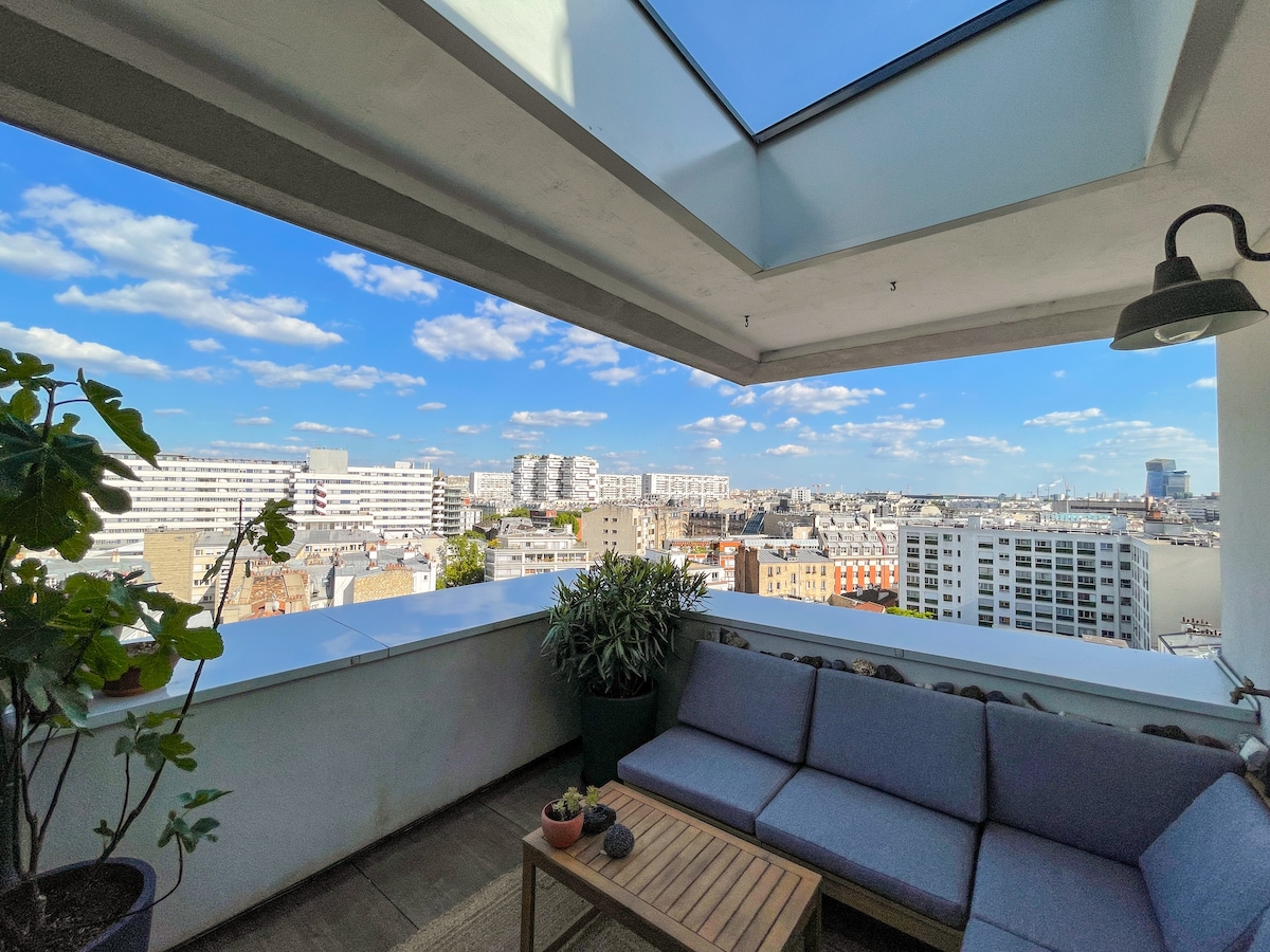 Atelier/loft avec vue sur les toits de Paris