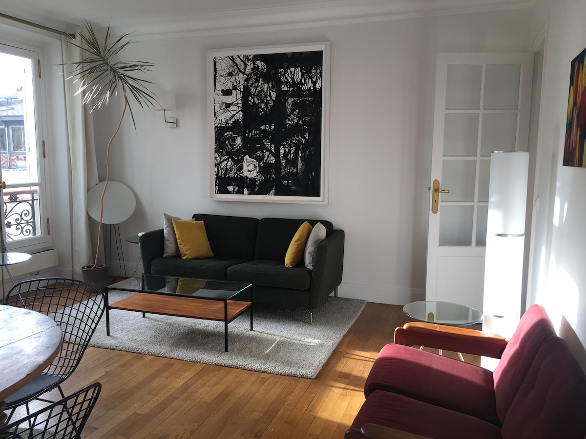 1 bedroom 6th floor (with elevator), on avenue Trudaine at the heart of the 9eme arrondissement (numerous shops - food, clothing, bars and restaurants) and the trendy area Martyr / Trudaine. This appartment comprises one bedroom, one salon with US kitchen, one bathroom with WC as well as a small balcony with a terrific view over the Eiffel Tower. The appartment is carefully cleaned after each visit in accordance with Airbnb Covid guidelines and instructions.