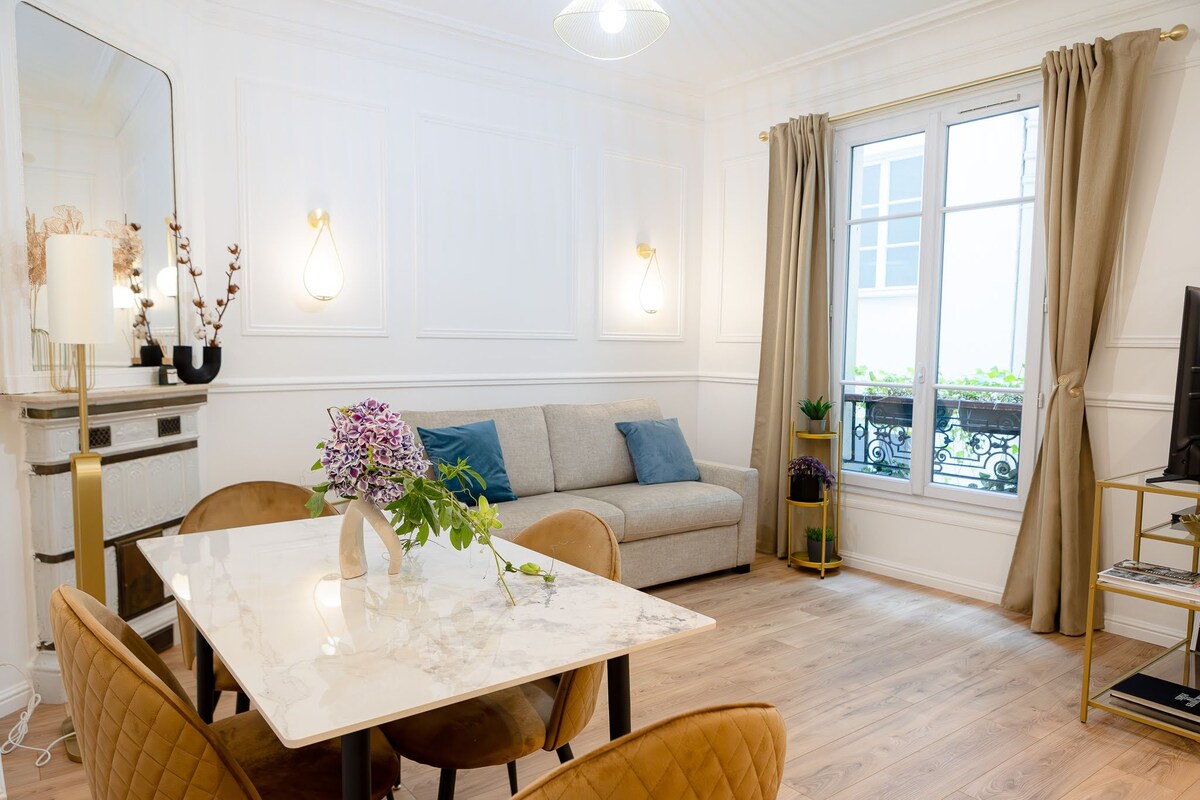 Appartement climatisée de 60 m2 à l’agencement haut de gamme dans l’hyper centre de Paris quartier historique de Montorgueil, célèbre pour ses commerces de bouches, ses petits bistrots et restos. L’appartement se situe au 1 er étage d’un immeuble dans une rue très calme. Il a été refait à neuf en 2023 par une célèbre architecte et donc très bien agencé avec des équipements de très haut standing. Vous y serez comme dans une suite d’hôtel avec le charme en plus, d’un vrai logement parisien.