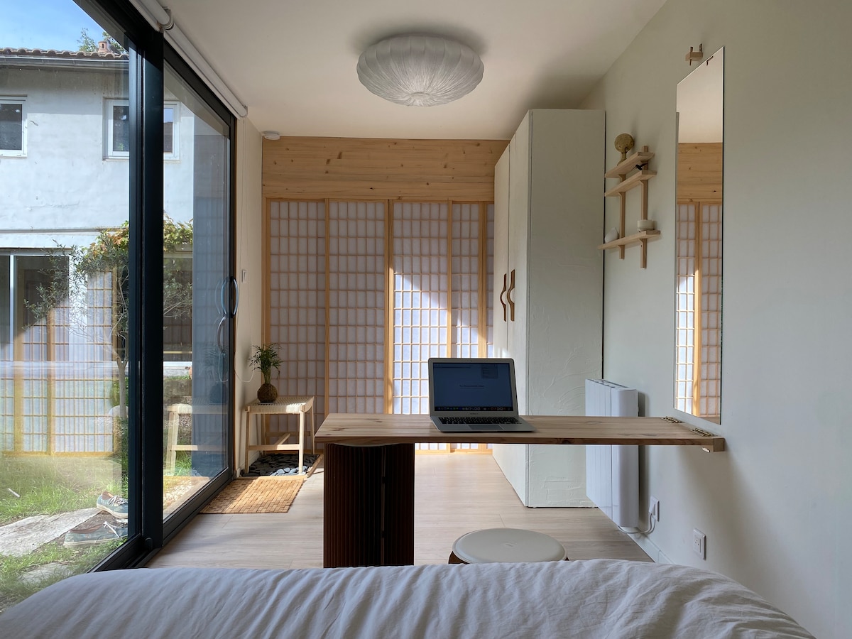 Notre studio est une maisonnette avec entrée privative. Il est situé entre la jolie gare de Bordeaux et l'emblématique marché des Capucins. Notre rue est paisible et fleurie, tel un hameau en centre ville dans un style typiquement bordelais. Composé d’un petit salon, d'un coin nuit séparé par des rideaux japonais, d'une cuisine équipée et d'une salle de bain/WC, il est très lumineux grace a ses grandes fenêtres et conserve sa fraicheur en été avec ses murs en pierre bordelaises.