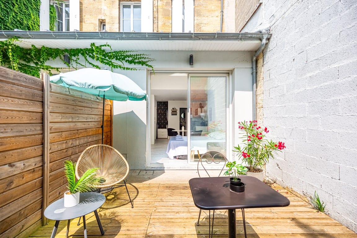 Notre maisonnette est une annexe de notre maison, à l’écart de l’habitation principale. Vous disposez d’un accès dédié et vous pouvez entrer/sortir librement. Notre rue est paisible et fleurie, tel un hameau en centre ville dans un style typiquement bordelais. Composé d’un petit salon, d'un coin nuit séparé par des rideaux japonais, d'un espace repas et d'une salle de bain/WC, il est très lumineux grace a ses grandes fenêtres et conserve sa fraicheur en été avec ses murs en pierre bordelaises.