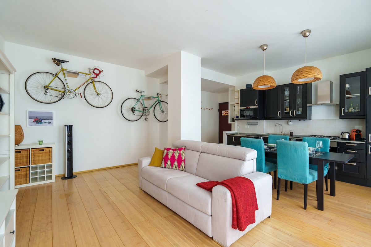 4 mins from Expo Fiera and 15 mins from the city center (by train). 10 mins by bus to reach the subway. Peaceful district with private security dedicated and free parking in the whole road. 45sqm open space apt on the 4th floor with elevator. Urban view. Bedroom with king-size sofabed on a wide sunny balcony where to enjoy italian breakfast in the morning. Hallway with spacious closet. Windowed bathroom where to feel at home with our fragrance diffuser and a warm shower at the end of your day.