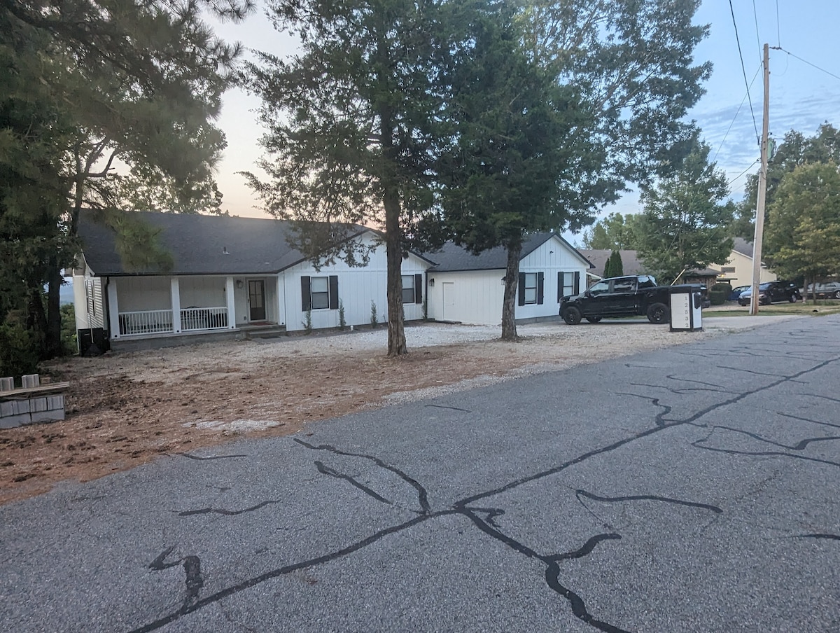 Nestled on a quiet street, surrounded by tall trees and a neat cave, your unique Beaver Lake rental awaits. Perfect for a "Great Outdoors" Family getaway, girls weekend, or a romantic escape. We can be your remote retreat, or your homebase for all the shopping and dining that Rogers, Bentonville and Eureka Springs have to offer. Play Bocce, cornhole or putt putt while friends & family sit around the fire. Our modern BoHo décor & classic cottage design creates a fun vibe for all!