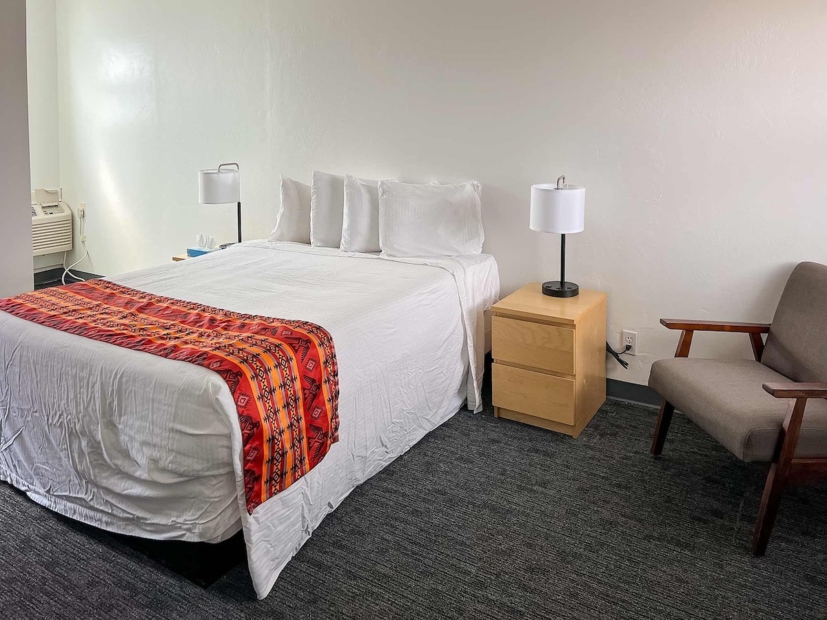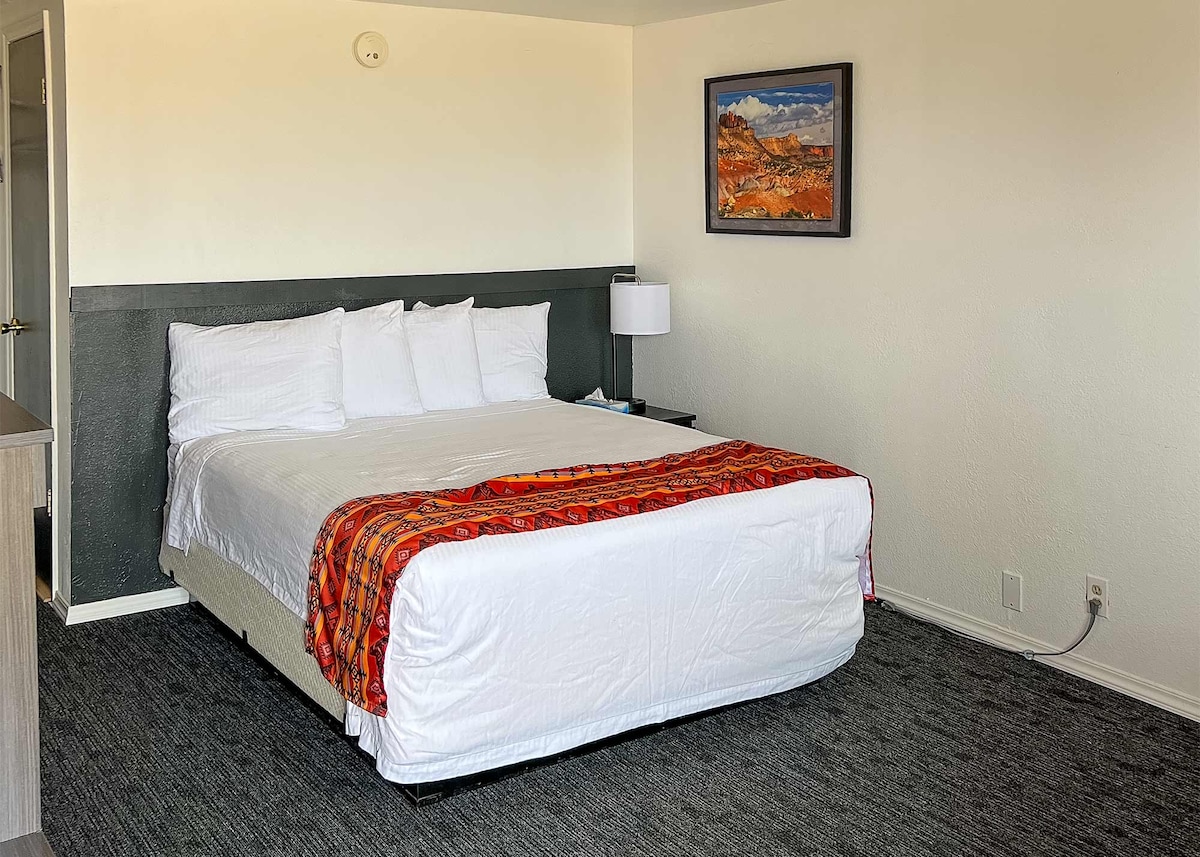 Enjoy a complimentary breakfast each morning before exploring southern Utah. This mini-suite sleeps up to six with two queen beds featuring brand new mattresses and bedding, plus a sleeper sofa. Includes a kitchenette, new TV, and climate control. Located on Escalante’s Main Street, ideal for trips to Capitol Reef and Scenic Byway 12.