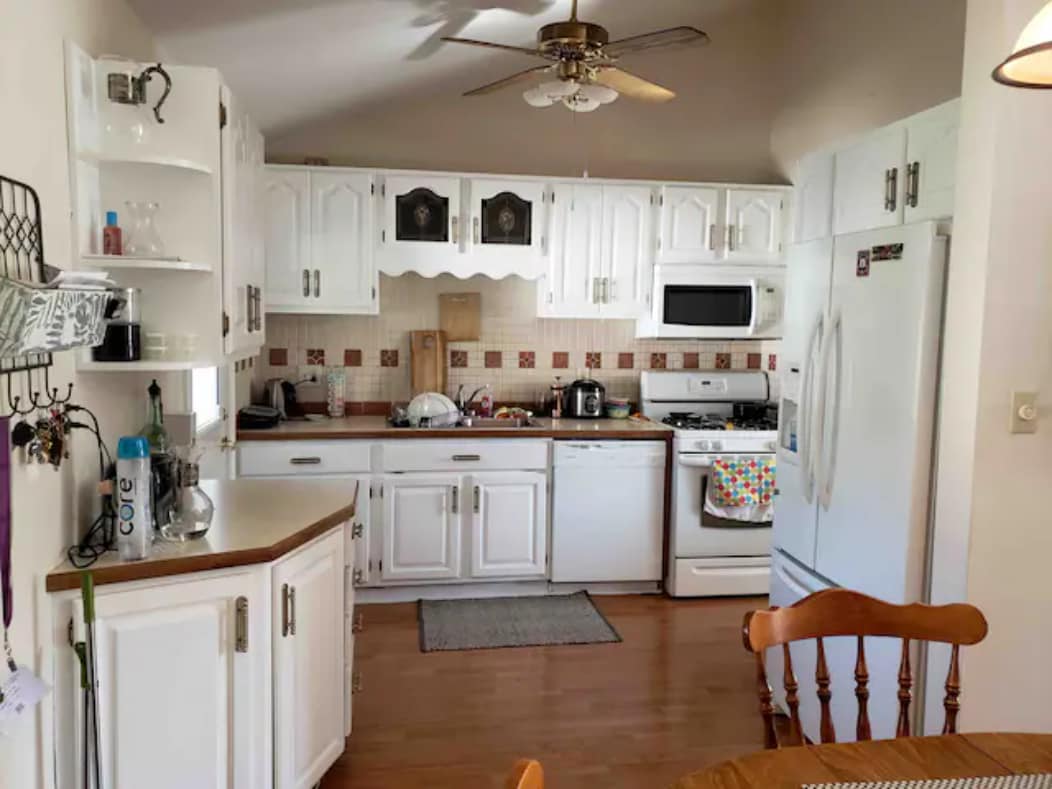 This 660 sf upper level private duplex is located 2 blocks from Garfield Heights Park and Marymount Hospital in Garfield Heights. It has one large bedroom with king bed and walk in closet, one full bath with tub, kitchen and living room. The two car garage is shared with downstairs guest. The upstairs guest will have the use of either side side of the garage. The living room sofa folds down into a full bed.