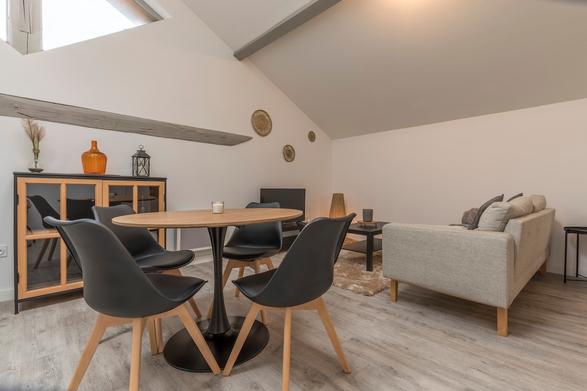 Profitez d’un séjour paisible dans cet appartement confortable aux poutres apparentes, entièrement rénové dans une ancienne ferme. Le logement peut accueillir jusqu’à 4 personnes : une chambre avec un lit double, un canapé-lit dans le salon, une cuisine équipée, une salle d’eau, un espace repas/bureau, TV et WiFi. Parking disponible sur place et local pour vélos. Boulangerie, restaurant et supérette accessibles à pieds. Emplacement idéal pour les balades ou circuits à vélo le long du canal.